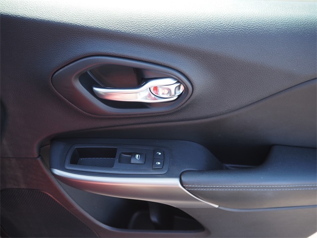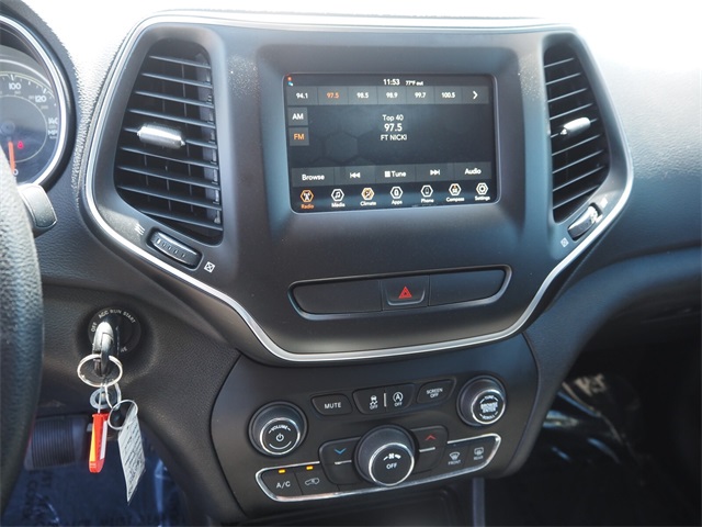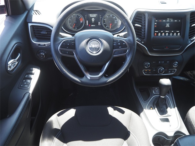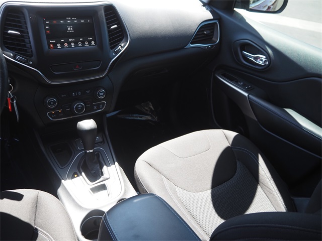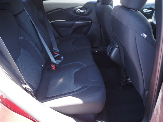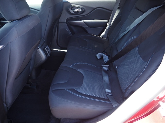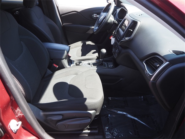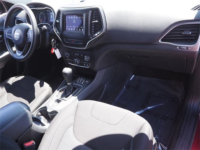 22/31 City/Highway MPGVelvet Red Pearlcoat 2019 Jeep Cherokee Latitude FWD 9-Speed 948TE Automatic 2.4L I4If you don't drive here, you can't save here!Price may not include recon fee. Popular Appearance Group (17" x 7" Painted Aluminum Wheels and Deep Tint Sunscreen Glass), Quick Order Package 2BJ, 3.734 Axle Ratio, 4-Wheel Disc Brakes, 6 Speakers, ABS brakes, Air Conditioning, AM/FM radio, Anti-whiplash front head restraints, Apple CarPlay/Android Auto, Brake assist, Bumpers: body-color, Cloth Bucket Seats, Compass, Delay-off headlights, Driver door bin, Driver vanity mirror, Dual front impact airbags, Dual front side impact airbags, Electronic Stability Control, Four wheel independent suspension, Front anti-roll bar, Front Bucket Seats, Front Center Armrest, Front fog lights, Front reading lights, Fully automatic headlights, Heated door mirrors, Illuminated entry, Knee airbag, Low tire pressure warning, Normal Duty Suspension, Occupant sensing airbag, Outside temperature display, Overhead airbag, Overhead console, Panic alarm, ParkView Rear Back-Up Camera, Passenger door bin, Passenger vanity mirror, Power door mirrors, Power steering, Power windows, Radio data system, Radio: Uconnect 4 w/7" Display, Rear anti-roll bar, Rear reading lights, Rear seat center armrest, Rear side impact airbag, Rear window defroster, Rear window wiper, Remote keyless entry, Roof rack: rails only, Speed control, Speed-sensing steering, Split folding rear seat, Spoiler, Stop-Start Multiple VSM System, Tachometer, Telescoping steering wheel, Tilt steering wheel, Traction control, Trip computer, Variably intermittent wipers, and Voltmeter.