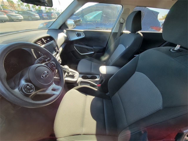 Recent Arrival!CARFAX One-Owner.29/35 City/Highway MPGCherry Black 2021 Kia Soul LX FWD IVT 2.0L I4 MPI DOHC 16V LEV3-ULEV125 147hpIf you don't drive here, you can't save here!Price may not include recon fee. 4-Wheel Disc Brakes, 6 Speakers, ABS brakes, Air Conditioning, AM/FM radio, Apple CarPlay & Android Auto, Brake assist, Bumpers: body-color, Cargo Net, Carpeted Floor Mats, Cloth Seat Trim, Delay-off headlights, Driver door bin, Driver vanity mirror, Dual front impact airbags, Dual front side impact airbags, Electronic Stability Control, Exterior Parking Camera Rear, Front anti-roll bar, Front Bucket Seats, Front Center Armrest, Front reading lights, Front wheel independent suspension, Fully automatic headlights, Low tire pressure warning, Occupant sensing airbag, Outside temperature display, Overhead airbag, Overhead console, Passenger door bin, Passenger vanity mirror, Power door mirrors, Power steering, Power windows, Radio: AM/FM/MP3 Audio System, Rear window defroster, Rear window wiper, Remote keyless entry, Remote Start, Speed control, Speed-sensing steering, Split folding rear seat, Steering wheel mounted audio controls, Tachometer, Telescoping steering wheel, Tilt steering wheel, Traction control, Trip computer, Variably intermittent wipers, and Wheels: 16" x 6.5 Steel.