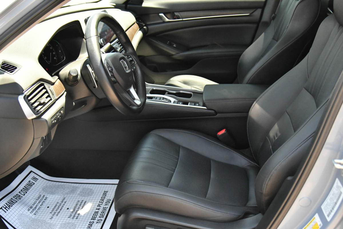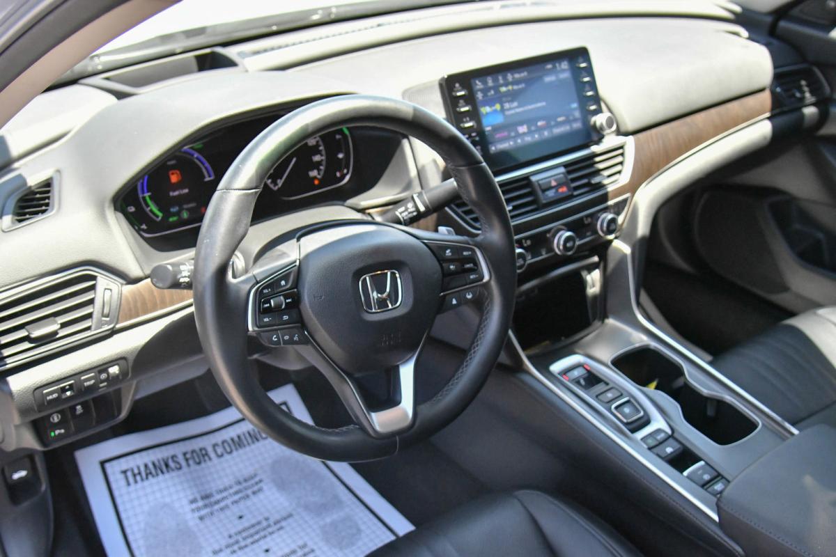 Boasts 41 Highway MPG and 44 City MPG! This Honda Accord Hybrid delivers a Gas/Electric I-4 2.0 L/122 engine powering this Variable transmission. Wheels: 19 Machine-Finished Alloy w/Black Inserts, Vehicle Stability Assist (VSA) Electronic Stability Control (ESC), Valet Function.*This Honda Accord Hybrid Features the Following Options *Trunk Rear Cargo Access, Trip Computer, Transmission: Electronic Continuously Variable -inc: 3-mode drive system (ECON/sport/EV), Shift-By-Wire (SBW) and deceleration paddle selector indicator, Tires: 235/40R19 AS, Tire mobility kit, Strut Front Suspension w/Coil Springs, Speed Sensitive Rain Detecting Variable Intermittent Wipers, Single Stainless Steel Exhaust, Side Impact Beams, Seats w/Leatherette Back Material.