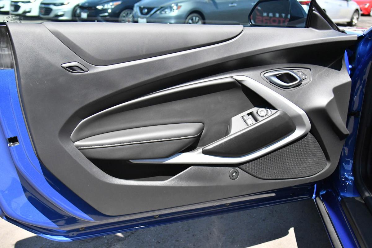 Only 672 Miles! Delivers 24 Highway MPG and 16 City MPG! This Chevrolet Camaro delivers a Gas V8 6.2L/376 engine powering this Manual transmission. WHEELS, 20 (50.8 CM) 5-SPOKE CARBON FLASH PAINTED ALUMINUM, TRANSMISSION, 6-SPEED MANUAL (Includes Active Rev Matching.) (STD), SPOILER, DECKLID-MOUNTED LIP SPOILER.*This Chevrolet Camaro Features the Following Options *SATIN BLACK APPEARANCE PACKAGE includes Satin Black outside mirrors and rear spoiler , SEATS, CLOTH FRONT SPORT BUCKET (STD), RIVERSIDE BLUE METALLIC, REAR AXLE, 3.73 RATIO, LT1 PREFERRED EQUIPMENT GROUP includes standard equipment, LPO, CARGO NET, LICENSE PLATE BRACKET, FRONT, JET BLACK, SEAT TRIM, EXHAUST, DUAL-MODE, ENGINE, 6.2L (376 CI) V8 DI, VVT (455 hp [339.3 kW] @ 6000 rpm, 455 lb-ft of torque [614.3 N-m] @ 4400 rpm) (STD).