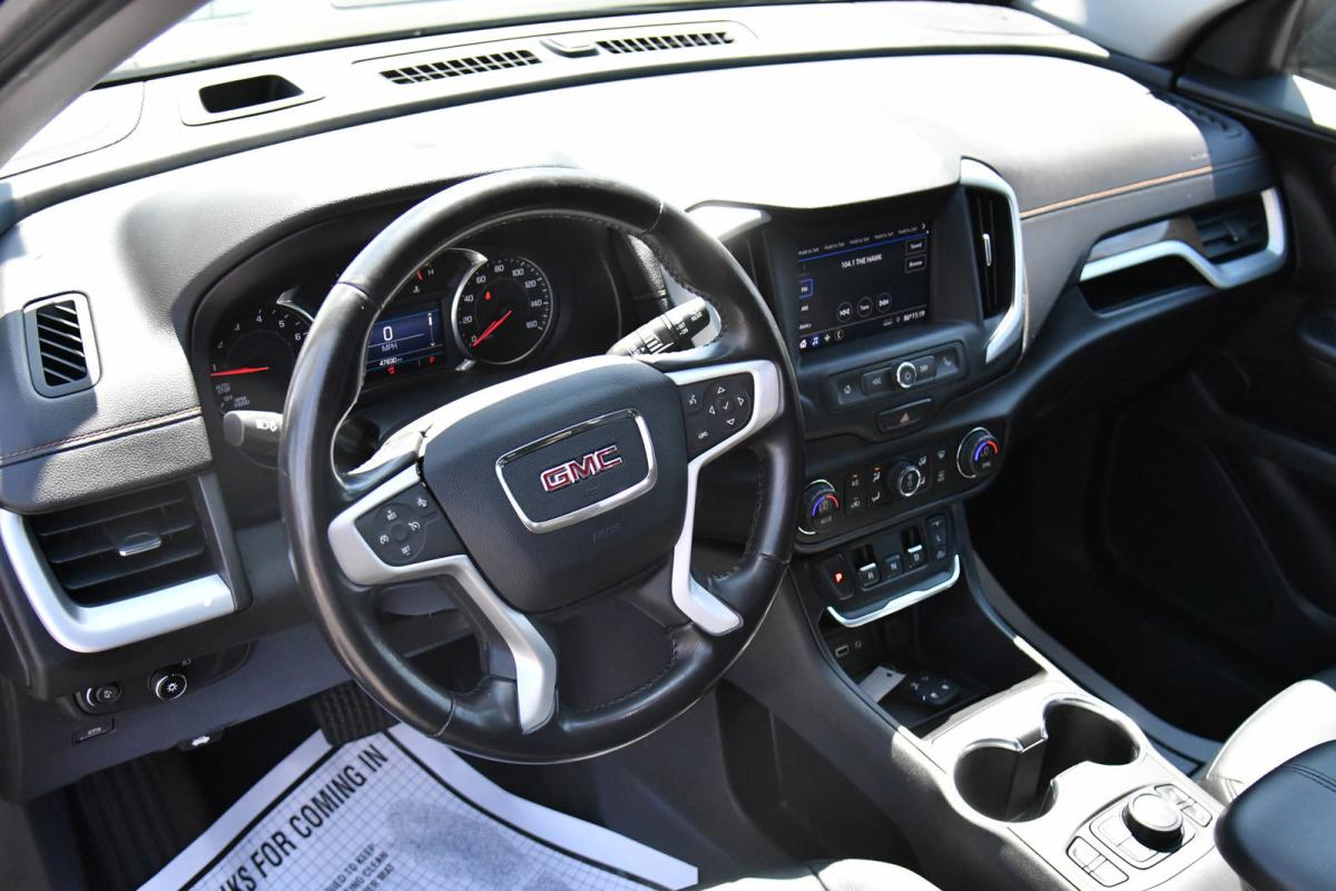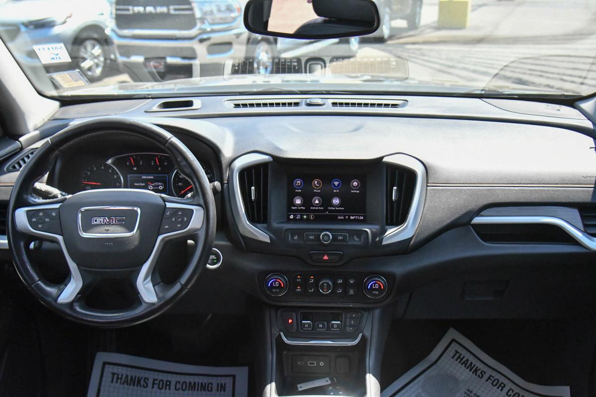 Boasts 30 Highway MPG and 26 City MPG! This GMC Terrain boasts a Turbocharged Gas/E15 I4 1.5L/92 engine powering this Automatic transmission. WHEELS, 19 X 7.5 (48.3 CM X 19.1 CM) GLOSS BLACK PAINTED ALUMINUM, TRANSMISSION, 9-SPEED AUTOMATIC 9T45, ELECTRONICALLY-CONTROLLED WITH OVERDRIVE (STD), TIRES, P235/50R19 ALL-SEASON BLACKWALL.*This GMC Terrain Features the Following Options *LUGGAGE RACK, SIDE RAILS, ROOF-MOUNTED When (ZQ2) Driver Convenience Package is ordered, side rails will be Black painted. When (WJP) Elevation Edition is ordered, side rails will be Black.), LICENSE PLATE FRONT MOUNTING PACKAGE, DRIVER CONVENIENCE PACKAGE includes (BTV) Remote Start, (CJ2) dual-zone automatic climate control, (KA1) driver and front passenger heated seats, (AG1) 8-way power driver seat adjuster, (AL9) driver power lumbar control and (V2P) roof-mounted luggage rack side rails, DRIVER ALERT PACKAGE I includes (KSG) Adaptive Cruise Control - Camera, (UKC) Lane Change Alert with Side Blind Zone Alert, (UFG) Rear Cross Traffic Alert, (UD7) Rear Park Assist and (HS1) Safety Alert Seat Also includes (DWK) outside heated power-adjustable manual-folding body-color mirrors with LED turn signal indicators.) , SUNROOF, SKYSCAPE POWER WITH POWER SUNSCREEN, SLE PREFERRED EQUIPMENT GROUP Includes Standard Equipment, SEATS, HEATED DRIVER AND FRONT PASSENGER, SEATS, FRONT BUCKET (STD), SEAT, POWER DRIVER LUMBAR CONTROL, SEAT, DRIVER 8-WAY POWER WITH 2-WAY POWER LUMBAR.
