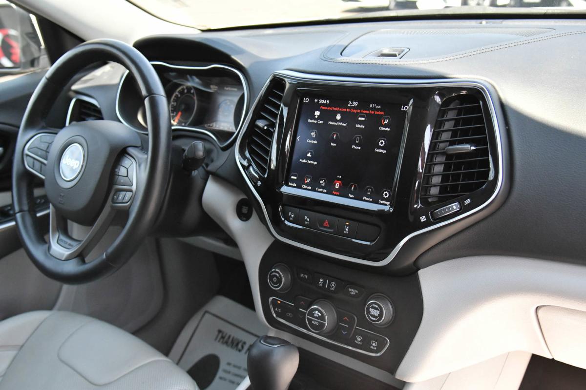 Boasts 29 Highway MPG and 20 City MPG! This Jeep Cherokee delivers a Regular Unleaded V-6 3.2 L/198 engine powering this Automatic transmission. TRANSMISSION: 9-SPEED 948TE AUTOMATIC (STD), SKI GRAY/BLACK, PREMIUM LEATHER TRIMMED BUCKET SEATS, RADIO: UCONNECT 4C NAV W/8.4 DISPLAY.*This Jeep Cherokee Comes Equipped with These Options *QUICK ORDER PACKAGE 26G -inc: Engine: 3.2L V6 24V VVT w/ESS, Transmission: 9-Speed 948TE Automatic, MOPAR INTERIOR PACKAGE -inc: MOPAR Cargo Area Liner, MOPAR Slush Mats, ELITE PACKAGE -inc: Chrome Tow Hooks, SiriusXM Traffic Plus, HD Radio, Radio: Uconnect 4C Nav w/8.4 Display, For Details Visit DriveUconnect.com, Carpeted Cargo Area Trim Panels, 1-Year SiriusXM Guardian Trial, 5-Year SiriusXM Travel Link Service, GPS Navigation, 5-Year SiriusXM Traffic Service, SiriusXM Travel Link, Ventilated Front Seats, 4G LTE Wi-Fi Hot Spot, Hands-Free Power Liftgate, Heated 2nd Row Seats, Fore/Aft Adjusting 2nd Row Seat , PIANO BLACK INTERIOR ACCENTS, MANUF STATEMENT OF ORIGIN, LIQUID TITANIUM DOOR TRIM APPLIQUES, GVWR: 5,500 LBS (STD), FRONT LICENSE PLATE BRACKET, ENGINE: 3.2L V6 24V VVT W/ESS (STD), BRIGHT WHITE CLEARCOAT.