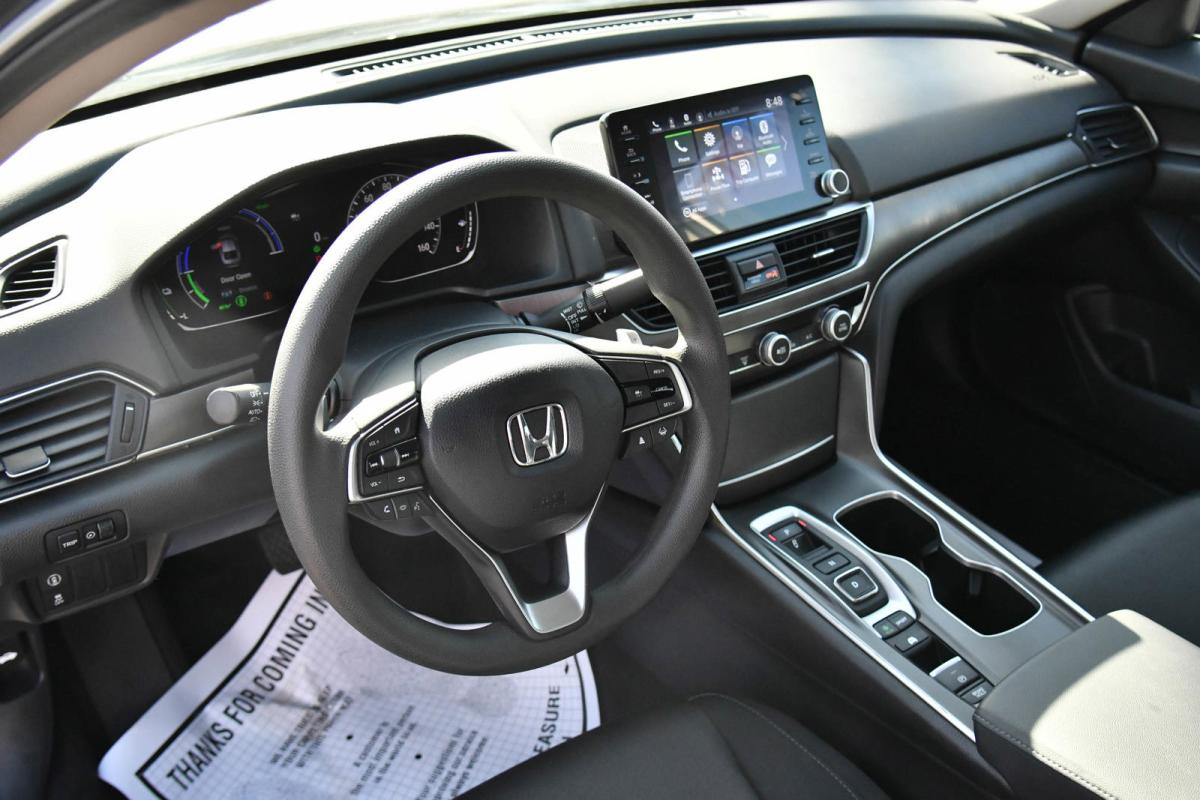 Scores 48 Highway MPG and 48 City MPG! This Honda Accord Hybrid delivers a Gas/Electric I-4 2.0 L/122 engine powering this Variable transmission. Wheels: 17 Machine-Finished Alloy, Vehicle Stability Assist (VSA) Electronic Stability Control (ESC), Valet Function.*This Honda Accord Hybrid Comes Equipped with These Options *Trunk Rear Cargo Access, Trip Computer, Transmission: Electronic Continuously Variable -inc: 3-mode drive system (ECON/sport/EV), Shift-By-Wire (SBW) and deceleration paddle selector indicator, Tires: 225/50R17 94V AS, Tire mobility kit, Systems Monitor, Strut Front Suspension w/Coil Springs, Speed Sensitive Variable Intermittent Wipers, Single Stainless Steel Exhaust, Side Impact Beams.