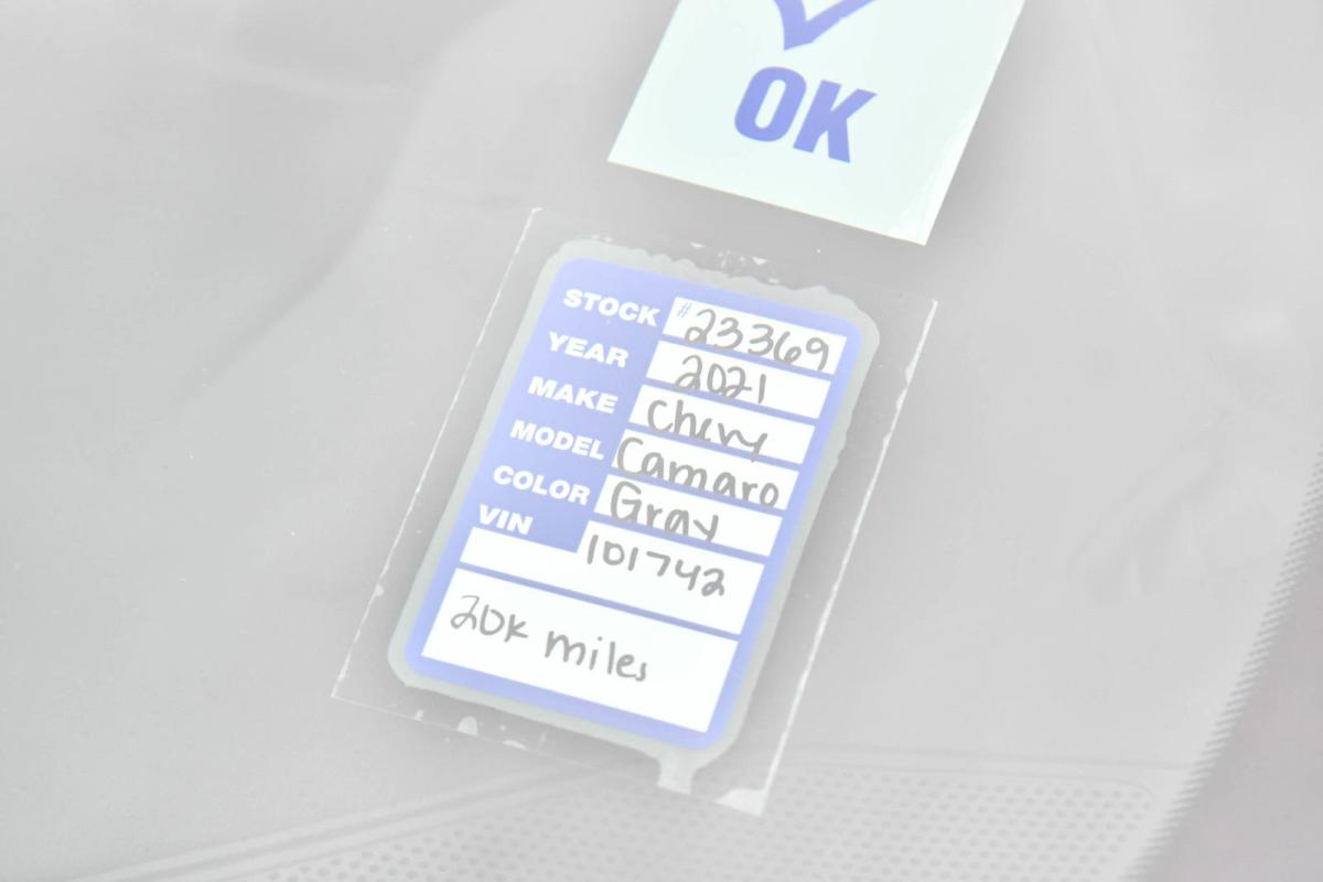 Only 20,061 Miles! Delivers 30 Highway MPG and 22 City MPG! This Chevrolet Camaro boasts a Turbocharged Gas I4 2.0L/122 engine powering this Automatic transmission. WHEELS, 18 (45.7 CM) SILVER-PAINTED ALUMINUM (STD), TRANSMISSION, AUTOMATIC includes transmission oil cooler and (BTV) remote vehicle starter system, TRANSMISSION, 8-SPEED.*This Chevrolet Camaro Comes Equipped with These Options *TIRES, 245/50R18, BLACKWALL, ALL-SEASON includes (KTI) tire inflator kit (STD), SHADOW GRAY METALLIC, SEATS, CLOTH FRONT SPORT BUCKET (STD), REMOTE VEHICLE STARTER SYSTEM, REAR AXLE, 3.27 RATIO, PADDLE-SHIFT MANUAL CONTROLS, LPO, FLOOR MATS, PREMIUM CARPETED WITH CAMARO LOGO, LPO, CARGO NET, LPO, ALL-WEATHER CARGO MAT WITH CAMARO LOGO, LICENSE PLATE BRACKET, FRONT.