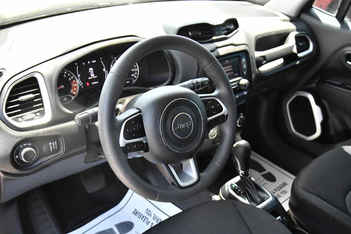 Delivers 30 Highway MPG and 22 City MPG! This Jeep Renegade boasts a Regular Unleaded I-4 2.4 L/144 engine powering this Automatic transmission. WHEELS: 16 X 6.5 STYLED STEEL (STD), TRANSMISSION: 9-SPEED 948TE AUTOMATIC (STD), TIRES: 215/65R16 LBL ALL SEASON (STD).*This Jeep Renegade Features the Following Options *QUICK ORDER PACKAGE 2XA -inc: Engine: 2.4L I4 ZERO EVAP M-AIR, Transmission: 9-Speed 948TE Automatic , STING-GRAY CLEARCOAT, MANUFACTURER'S STATEMENT OF ORIGIN, GLOBAL TELEMATICS BOX MODULE (TBM) -inc: 1 Year Trial (Registration Required), ENGINE: 2.4L I4 ZERO EVAP M-AIR (STD), CONNECTIVITY (BRIDGE SOLUTION), BLACK, CLOTH LOW-BACK BUCKET SEATS, Wheels: 16 x 6.5 Styled Steel, Variable Intermittent Wipers, Uconnect w/Bluetooth Wireless Phone Connectivity.