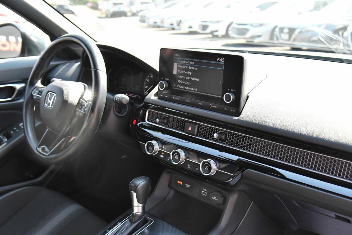 NACTOY 2022 North American Car of the Year. Boasts 37 Highway MPG and 29 City MPG! This Honda Civic Hatchback delivers a Regular Unleaded I-4 2.0 L/122 engine powering this Variable transmission. Wheels: 18 Alloy, Wheels w/Machined w/Painted Accents Accents, Vehicle Stability Assist (VSA) Electronic Stability Control (ESC).*This Honda Civic Hatchback Comes Equipped with These Options *Trip Computer, Transmission: Continuously Variable -inc: dual-mode paddle shifters, LED gear position indicators and 3-mode drive system (econ, normal, sport), Traffic Jam Assist, Tires: 235/40R18 91W AS, Tailgate/Rear Door Lock Included w/Power Door Locks, Strut Front Suspension w/Coil Springs, Steel Spare Wheel, Single Stainless Steel Exhaust, Side Impact Beams, Seats w/Cloth Back Material.