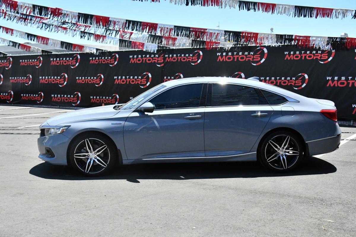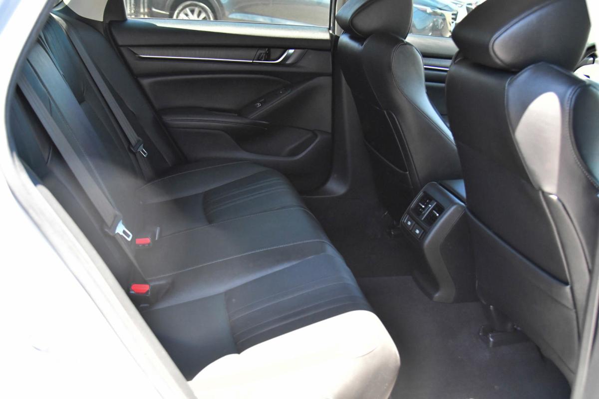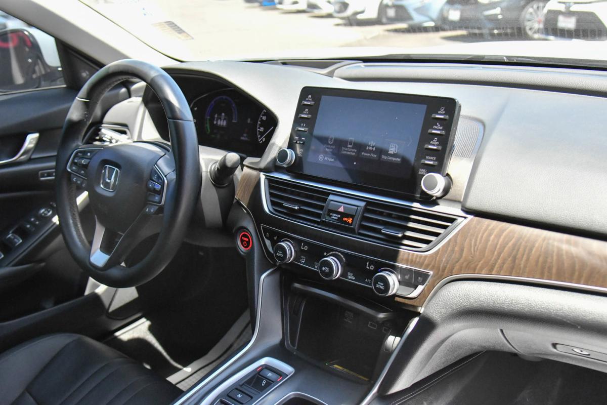Boasts 41 Highway MPG and 44 City MPG! This Honda Accord Hybrid delivers a Gas/Electric I-4 2.0 L/122 engine powering this Variable transmission. Wheels: 19 Machine-Finished Alloy w/Black Inserts, Vehicle Stability Assist (VSA) Electronic Stability Control (ESC), Valet Function.*This Honda Accord Hybrid Features the Following Options *Trunk Rear Cargo Access, Trip Computer, Transmission: Electronic Continuously Variable -inc: 3-mode drive system (ECON/sport/EV), Shift-By-Wire (SBW) and deceleration paddle selector indicator, Tires: 235/40R19 AS, Tire mobility kit, Strut Front Suspension w/Coil Springs, Speed Sensitive Rain Detecting Variable Intermittent Wipers, Single Stainless Steel Exhaust, Side Impact Beams, Seats w/Leatherette Back Material.