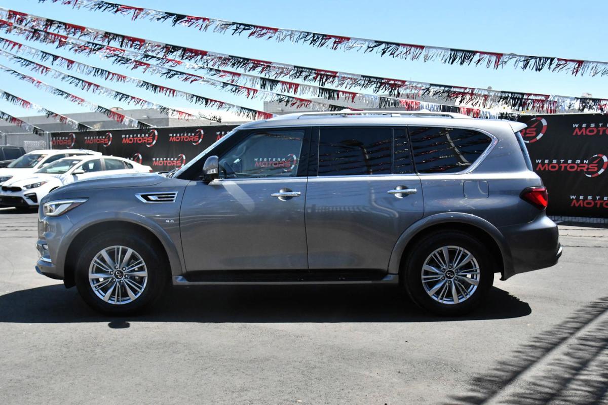 KBB.com 5-Year Cost to Own Awards. Delivers 19 Highway MPG and 13 City MPG! This INFINITI QX80 delivers a Premium Unleaded V-8 5.6 L/339 engine powering this Automatic transmission. GRAPHITE, SEMI-ANILINE LEATHER-APPOINTED SEATING W/QUILTING, GRAPHITE, LEATHER-APPOINTED SEATS W/STRATFORD BURL TRIM, GRAPHITE SHADOW.*This INFINITI QX80 Comes Equipped with These Options *[L93] ALL-SEASON PACKAGE -inc: All-Season Floor Mats, Water-resistant, custom-made of durable and long-wearing material, 3 rows floor mats, Cargo Area Mat, Water-resistant, custom-made of durable and long-wearing material, Covers 3rd row seats when folded, [L92] CARGO PACKAGE -inc: First-Aid Kit, High-Density Non-Slip Rear Cargo Carpet, moisture-resistant backing, Nylon-Cord Cargo Net, tie-down hooks, [F01] PROASSIST PACKAGE -inc: steering wheel switch for safety shield technologies, Backup Collision Intervention (BCI), Blind Spot Intervention (BSI), Lane Departure Warning (LDW), Lane Departure Prevention (LDP), Intelligent Cruise Control (Full-Speed Range), Distance Control Assist (DCA), Blind Spot Warning (BSW), , [S55] LITERATURE KIT, [N10] RADIANT ILLUMINATED KICK PLATES -inc: Factory installed, [B92] ROOF RAIL CROSS BARS -inc: Cross bars integrate into existing roof rails for maximum utility, Wind-tunnel-tested design, Window Grid Diversity Antenna, Wheels: 20 x 8.0 Aluminum-Alloy, Wheels w/Silver Accents, Voice Activated Dual Zone Front Automatic Air Conditioning.
