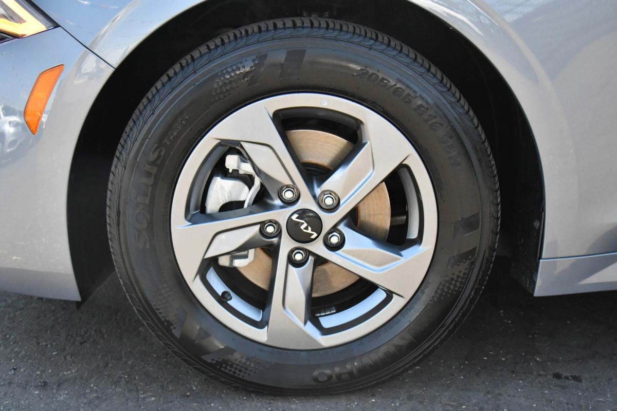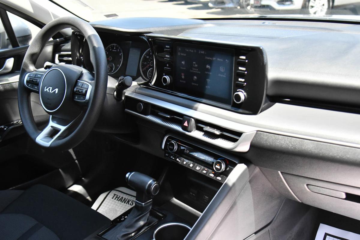 Boasts 37 Highway MPG and 27 City MPG! This Kia K5 delivers a Intercooled Turbo Regular Unleaded I-4 1.6 L/98 engine powering this Automatic transmission. EVERLASTING SILVER, CARPETED FLOOR MATS, BLACK, CLOTH SEAT TRIM.*This Kia K5 Comes Equipped with These Options *Window Grid Antenna, Wheels: 16 Gray Alloy, Variable Intermittent Wipers, Urethane Gear Shifter Material, Turn-By-Turn Navigation Directions, Trunk Rear Cargo Access, Trip Computer, Transmission: 8-Speed Automatic -inc: drive mode select system, Transmission w/Sequential Shift Control, Tires: 205/65R16.