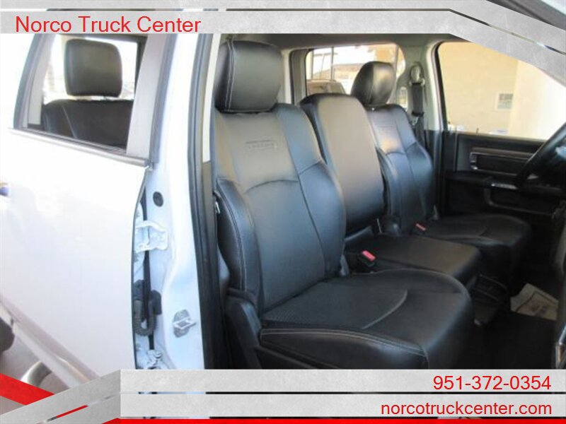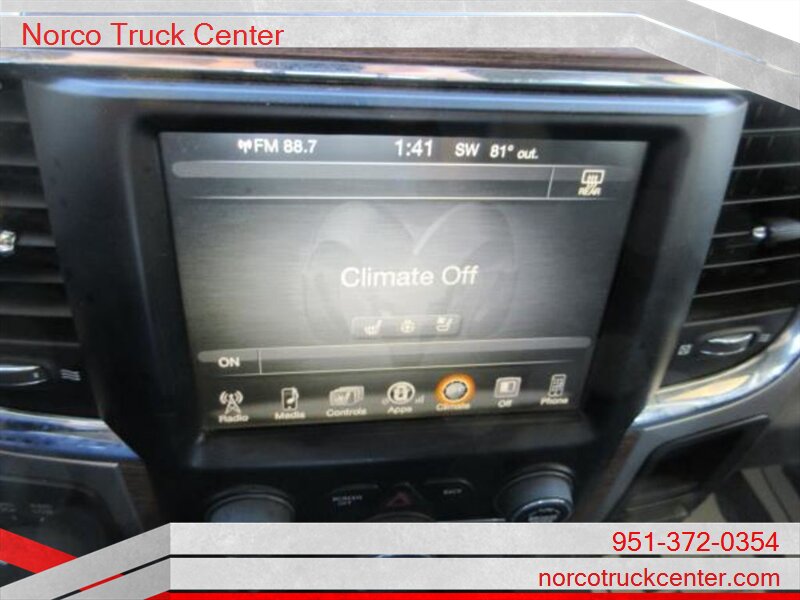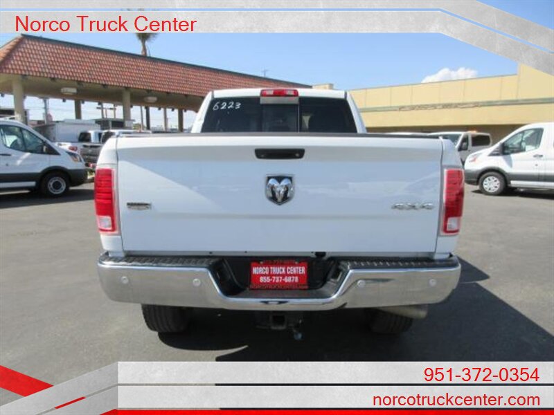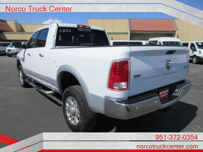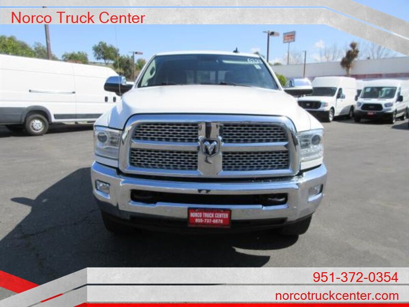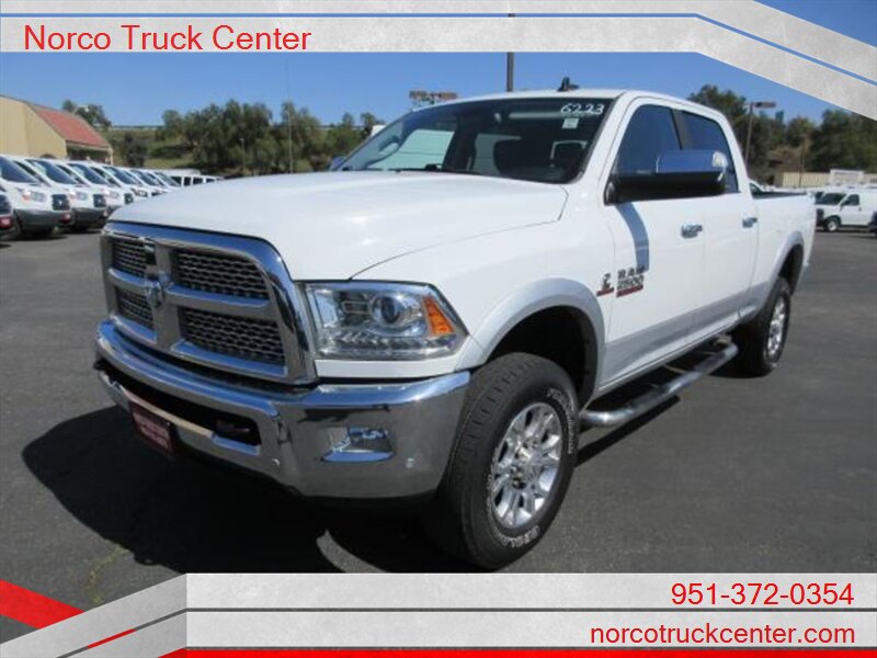 YOU ARE LOOKING AT A 2016 RAM 2500 DSL 4X4 WITH A CREW CAB BODY. THIS VEHICLE HAS AN AT TRANSMISSION, L6, 6.7L; TURBO ENGINE WITH 99796 MILES. THE DRIVETRAIN IS: 4WD. PLEASE CALL NORCO TRUCK CENTER INC FOR MORE INFORMATION AT (951) 372-0354 OR COME SEE US AT ~ 2075 HAMNER AVE. NORCO, CA. 92860 ~ -- INSTALLED FEATURES: Front air conditioning: automatic climate control, Front air conditioning zones: dual, Airbag deactivation: occupant sensing passenger, Front airbags: dual, Side airbags: front, Side curtain airbags: front / rear, Antenna type: diversity / mast, Auxiliary audio input: Bluetooth / iPod/iPhone / jack / memory card slot / USB, Premium brand: Alpine, Radio: AM/FM / touch screen display / voice operated, Radio data system, Satellite radio: SiriusXM, Speed sensitive volume control, Subwoofer: 1, Surround sound, Total speakers: 10, Watts: 506, ABS: 4-wheel, Brake drying, Braking assist, Electronic brakeforce distribution, Front brake type: ventilated disc, Power brakes, Rear brake type: ventilated disc, Armrests: front center / rear center folding with storage, Dash trim: simulated wood, Floor mat material: carpet, Floor material: carpet, Floor mats: front / rear, Heated steering wheel, Shift knob trim: chrome, Steering wheel trim: leather, Ambient lighting, Ashtray, Assist handle: front / rear, Center console: front console with storage, Cruise control, Cupholders: front / rear, Memorized settings: 2 driver / audio system / driver seat / side mirrors, Multi-function remote: keyless entry, One-touch windows: 2, Overhead console: front, Power outlet(s): 115V / 12V, Power steering, Power windows: lockout button, Reading lights: front, Rearview mirror: auto-dimming, Steering wheel: tilt, Steering wheel mounted controls: audio / cruise control / multi-function / phone / voice control, Storage: door pockets / front seatback / in floor / organizer / under front seats / under rear seats, Universal remote transmitter: garage door opener, Vanity mirrors: dual illuminating, Door handle color: body-color with chrome accents, Fender lip moldings: body-color, Front bumper color: chrome, Grille color: chrome / chrome surround, Mirror color: chrome, Pickup bed light, Rear bumper color: chrome, Tailgate: removable, Window trim: black, Infotainment: Uconnect, Infotainment screen size: 8.4 in., Clock, Compass, Customizable instrument cluster, Digital odometer, External temperature display, Fuel economy display: MPG / range, Gauge: tachometer, Instrument cluster screen size: 7 in., Multi-function display, Powertrain hour meter, Trip odometer, Warnings and reminders: low fuel level / low oil level / maintenance due, Exterior entry lights: puddle lamps, Front fog lights, Headlights: auto delay off / auto on / halogen, Taillights: LED, Side mirror adjustments: power / power folding, Side mirrors: auto-dimming / heated / integrated turn signals, 4WD selector: electronic hi-lo, 4WD type: part time, Alternator: 160 amps, Auxiliary transmission fluid cooler, Battery: maintenance-free, Battery rating: 730 CCA, Emissions: 50 state, Camera system: rearview, Child safety door locks, Child seat anchors: LATCH system, Crumple zones: front, Parking sensors: rear, Rearview monitor: in mirror, Emergency locking retractors: front / rear, Front seatbelts: 3-point, Rear seatbelts: 3-point, Seatbelt force limiters: front, Seatbelt pretensioners: front, Seatbelt warning sensor: front, Driver seat: heated / ventilated, Driver seat power adjustments: 10 / height / lumbar / reclining, Front headrests: 2 / adjustable, Front seat type: 40-20-40 split bench, Passenger seat: heated / ventilated, Passenger seat manual adjustments: reclining, Passenger seat power adjustments: 6 / height / lumbar, Rear headrests: 3 / adjustable, Rear seat folding: folds up, Rear seat type: 60-40 split bench, Upholstery: leather, Anti-theft system: alarm / vehicle immobilizer, Power door locks, Hill holder control, Roll stability control, Stability control, Traction control, Trailer stability control, Front shock type: gas, Front spring type: coil, Front stabilizer bar, Front suspension classification: solid live axle, Front suspension type: multi-link, Rear shock type: gas, Rear spring type: coil, Rear suspension classification: solid live axle, Rear suspension type: multi-link, Electronic messaging assistance: voice operated / with read function, Wireless data link: Bluetooth, Trailer brake controller, Trailer hitch: Class V, Trailer wiring: 4-pin / 7-pin, Spare tire mount location: underbody, Spare tire size: full-size, Spare wheel type: steel, Tire Pressure Monitoring System, Wheels: polished aluminum alloy, Front wipers: variable intermittent, Pickup sliding rear window: power horizontal, Power windows, Rear privacy glass