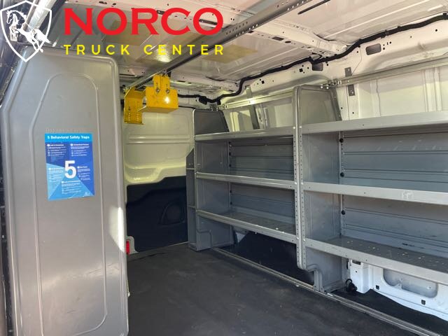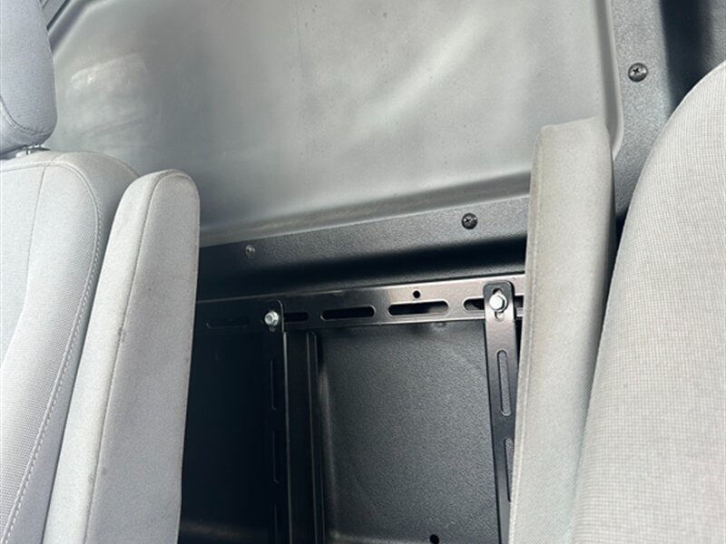 -- INSTALLED FEATURES: Front air conditioning, Front air conditioning zones: single, Airbag deactivation: passenger switch, Front airbags: dual, Side airbags: front, Side curtain airbags: front, Antenna type: mast, Auxiliary audio input: jack, Radio: AM/FM, Total speakers: 4, ABS: 4-wheel, Braking assist, Electronic brakeforce distribution, Front brake diameter: 12.1, Front brake type: ventilated disc, Power brakes, Rear brake diameter: 12.1, Rear brake type: disc, Armrests: drivers seat, Floor material: rubber/vinyl, Shift knob trim: urethane, Steering wheel trim: urethane, Assist handle: passenger side, Capless fuel filler system, Cargo area light, Center console: front console with storage, Cupholders: front, Multi-function remote: keyless entry, One-touch windows: 1, Power outlet(s): 12V cargo area / 12V front, Power steering, Reading lights: front, Rearview mirror: manual day/night, Steering wheel: tilt and telescopic, Storage: cargo tie-down anchors and hooks / door pockets, Sun visors, Axle ratio: 3.73, Alternator: 150 amps, Battery: maintenance-free, Battery rating: 610 CCA, Body side moldings: black, Bumper detail: rear step, Door handle color: black, Front bumper color: black, Grille color: black / black surround, Headlight bezel color: black, Mirror color: black, Rear bumper color: black, Rear trunk/liftgate: barn, Side door type: passenger-side manual sliding, Window trim: black, Infotainment screen size: 4 in., Clock, Digital odometer, Gauge: tachometer, Warnings and reminders: low fuel level, Headlights: halogen, Side mirror adjustments: manual folding / power, OEM roof height: low, Camera system: rearview, Impact sensor: door unlock / post-collision safety system, Rearview monitor: in mirror, Front seatbelts: 3-point, Seatbelt pretensioners: front, Seatbelt warning sensor: front, Driver seat manual adjustments: reclining / 4, Front headrests: adjustable / 2, Front seat type: bucket, Passenger seat manual adjustments: reclining / 4, Upholstery: vinyl, Power door locks: auto-locking, Hill holder control, Roll stability control, Stability control, Traction control, Front shock type: gas, Front spring type: coil, Front stabilizer bar, Front struts: MacPherson, Front suspension classification: independent, Front suspension type: lower control arms, Rear shock type: gas, Rear spring type: leaf, Rear suspension classification: solid live axle, Rear suspension type: multi-leaf, Spare tire mount location: underbody, Spare tire size: full-size, Spare wheel type: steel, Tire Pressure Monitoring System, Tire type: all season, Wheel covers: partial, Wheels: steel, Auxiliary transmission fluid cooler, Front wipers: variable intermittent, Laminated glass, Power windows, Solar-tinted glass