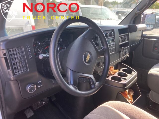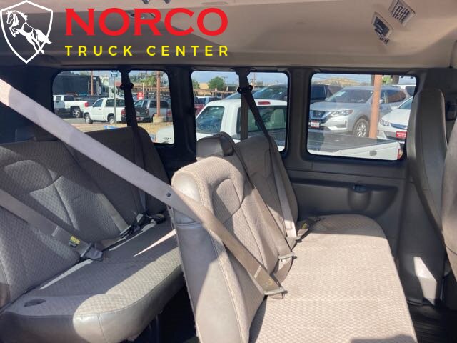 -- INSTALLED FEATURES: Front air conditioning, Front air conditioning zones: single, Airbag deactivation: passenger switch, Front airbags: dual, Side curtain airbags: front / rear / third row, Antenna type: mast, Auxiliary audio input: jack, Radio: AM/FM, Total speakers: 2, ABS: 4-wheel, Electronic brakeforce distribution, Front brake diameter: 12.8, Front brake type: disc, Front brake width: 1.5, Power brakes, Rear brake diameter: 13.0, Rear brake type: disc, Rear brake width: 1.1, Armrests: front center, Floor material: rubber/vinyl, Steering wheel trim: urethane, Assist handle: passenger side, Cargo area light, Cupholders: front / 3, Power outlet(s): 115V / two 12V front, Power steering, Power windows: lockout button, Rearview mirror: manual day/night, Storage: door pockets / in dash, Sun visors, Axle ratio: 3.42, Alternator: 105 amps, Auxiliary oil cooler, Battery: maintenance-free, Battery rating: 600 CCA, Battery saver, Bumper detail: rear step, Door handle color: black, Exhaust tip color: stainless steel, Front bumper color: black, Grille color: black, License plate bracket: front, Mirror color: black, Rear bumper color: black, Rear trunk/liftgate: barn, Side door type: passenger-side hinged swing-out, Window trim: black, Clock, Digital odometer, Engine hour meter, Fuel economy display: MPG / range, Gauge: oil pressure / tachometer, Multi-function display, Trip odometer, Warnings and reminders: low fuel level / maintenance due / turn off headlights, Daytime running lights, Headlights: halogen, Side mirror adjustments: manual / manual folding, OEM roof height: undefined, Child safety door locks, Child seat anchors: LATCH system, Fourth row seatbelts: 3-point, Front seatbelts: 3-point, Rear seatbelts: 3-point, Seatbelt pretensioners: front, Third row seatbelts: 3-point, Driver seat manual adjustments: reclining / 4, Fourth row seat type: 50-50 split bench, Front headrests: integrated / 2, Front seat type: bucket, Passenger seat manual adjustments: reclining / 4, Rear seat type: bench, Third row seat type: bench, Upholstery: vinyl, Anti-theft system: alarm / vehicle immobilizer, Power door locks: anti-lockout, Stability control, Traction control, Steering ratio: 17.2, Turns lock-to-lock: 3.0, Front shock type: gas, Front spring type: coil, Front stabilizer bar: diameter 35 mm, Front suspension classification: independent, Front suspension type: short and long arm, Rear shock type: gas, Rear spring type: leaf, Rear suspension classification: solid live axle, Rear suspension type: multi-leaf, Satellite communications: OnStar / voice guided directions, Spare tire mount location: underbody, Spare tire size: full-size matching, Spare wheel type: steel, Tire Pressure Monitoring System, Tire type: all season, Wheel covers: partial, Wheels: steel, Auxiliary transmission fluid cooler, Tow/Haul mode, Front wipers: intermittent, Power windows, Solar-tinted glass, Window defogger: side