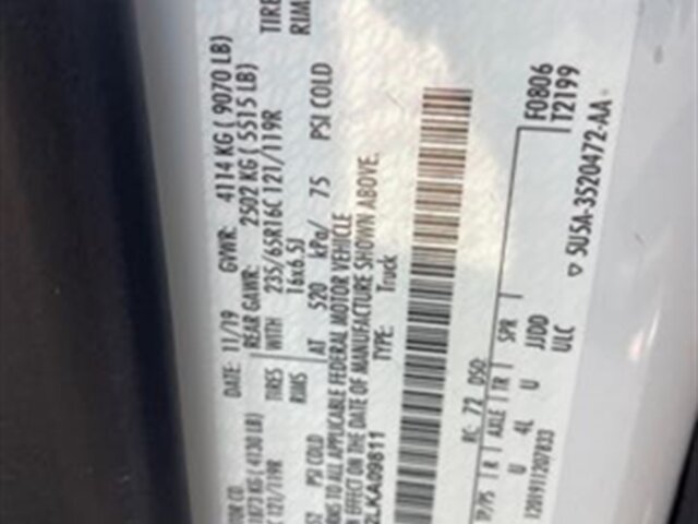 -- INSTALLED FEATURES: Front air conditioning, Front air conditioning zones: single, Airbag deactivation: passenger switch, Front airbags: dual, Side airbags: front, Side curtain airbags: front, Antenna type: mast, Auxiliary audio input: Bluetooth / USB, Radio: AM/FM, Total speakers: 4, ABS: 4-wheel, Braking assist, Cornering brake control, Electronic brakeforce distribution, Emergency braking preparation, Front brake diameter: 12.1, Front brake type: ventilated disc, Power brakes, Rear brake diameter: 12.1, Rear brake type: ventilated disc, Armrests: dual front, Floor material: rubber/vinyl, Shift knob trim: urethane, Steering wheel trim: urethane, Assist handle: front / rear, Capless fuel filler system, Cargo area light, Center console: front console with storage, Cupholders: front, Multi-function remote: keyless entry / panic alarm / trunk release, Overhead console: front, Power outlet(s): 12V front, Power steering: variable/speed-proportional, Reading lights: front, Steering wheel: tilt and telescopic, Steering wheel mounted controls: audio / multi-function / phone, Storage: cargo tie-down anchors and hooks / door pockets, Sun visors, Axle ratio: 4.10, Alternator: 250 amps, Battery: maintenance-free, Battery rating: 610 CCA, Body side moldings: black, Door handle color: black, Front bumper color: black, Grille color: black / black surround, Mirror color: black, Rear bumper color: black, Rear trunk/liftgate: barn, Side door type: passenger-side manual sliding, Window trim: black, Infotainment screen size: 4 in., Clock, Digital odometer, Gauge: tachometer, Trip odometer, Warnings and reminders: low fuel level, Headlights: auto high beam dimmer / halogen / wiper activated, Side mirror adjustments: manual folding / power, OEM roof height: high, Automatic emergency braking: front, Camera system: rearview, Driver attention alert system, Impact sensor: door unlock / post-collision safety system, Lane deviation sensors, Pre-collision warning system: audible warning / visual warning, Rearview monitor: in dash, Front seatbelts: 3-point, Driver seat manual adjustments: reclining / 2, Front headrests: adjustable / 2, Front seat type: bucket, Passenger seat manual adjustments: reclining / 2, Upholstery: vinyl, Anti-theft system: vehicle immobilizer, Power door locks: auto-locking, Crosswind stabilization, Hill holder control, Roll stability control, Stability control, Traction control, Trailer stability control, Front shock type: gas, Front spring type: coil, Front stabilizer bar, Front struts: MacPherson, Front suspension classification: independent, Front suspension type: lower control arms, Rear shock type: gas, Rear spring type: leaf, Rear suspension classification: solid live axle, Rear suspension type: multi-leaf, Smart device app compatibility: FordPass Connect, Smart device app function: engine start / lock operation / maintenance status / vehicle location, Wi-Fi: hotspot, Wireless data link: Bluetooth, Spare tire mount location: underbody, Spare tire size: full-size, Spare wheel type: steel, Tire Pressure Monitoring System, Tire type: all season, Wheel covers: partial, Wheels: painted steel, Auxiliary transmission fluid cooler, Front wipers: rain sensing / variable intermittent, Power windows, Solar-tinted glass