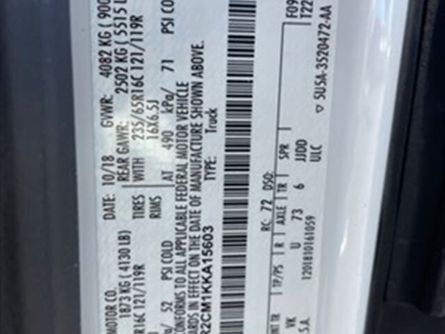 INSTALLED FEATURES: Front air conditioning, Front air conditioning zones: single, Airbag deactivation: passenger switch, Front airbags: dual, Side airbags: front, Side curtain airbags: front, Antenna type: mast, Auxiliary audio input: jack, Radio: AM/FM, Total speakers: 4, ABS: 4-wheel, Braking assist, Electronic brakeforce distribution, Front brake diameter: 12.1, Front brake type: ventilated disc, Power brakes, Rear brake diameter: 12.1, Rear brake type: disc, Armrests: drivers seat, Floor material: rubber/vinyl, Shift knob trim: urethane, Steering wheel trim: urethane, Assist handle: passenger side, Capless fuel filler system, Cargo area light, Center console: front console with storage, Cupholders: front, Multi-function remote: keyless entry, One-touch windows: 1, Overhead console: front, Power outlet(s): 12V front, Power steering, Reading lights: front, Rearview mirror: manual day/night, Steering wheel: tilt and telescopic, Storage: cargo tie-down anchors and hooks / door pockets, Sun visors, Axle ratio: 3.73, Alternator: 150 amps, Battery: maintenance-free, Battery rating: 610 CCA, Body side moldings: black, Door handle color: black, Front bumper color: black, Grille color: black / black surround, Headlight bezel color: black, Mirror color: black, Rear bumper color: black, Rear trunk/liftgate: barn, Side door type: passenger-side manual sliding, Window trim: black, Infotainment screen size: 4 in., Clock, Digital odometer, Gauge: tachometer, Warnings and reminders: low fuel level, Headlights: halogen, Side mirror adjustments: manual folding / power, OEM roof height: medium, Camera system: rearview, Impact sensor: door unlock / post-collision safety system, Rearview monitor: in mirror, Front seatbelts: 3-point, Seatbelt pretensioners: front, Seatbelt warning sensor: front, Driver seat manual adjustments: reclining / 4, Front headrests: adjustable / 2, Front seat type: bucket, Passenger seat manual adjustments: reclining / 4, Upholstery: vinyl, Power door locks: auto-locking, Hill holder control, Roll stability control, Stability control, Traction control, Front shock type: gas, Front spring type: coil, Front stabilizer bar, Front struts: MacPherson, Front suspension classification: independent, Front suspension type: lower control arms, Rear shock type: gas, Rear spring type: leaf, Rear suspension classification: solid live axle, Rear suspension type: multi-leaf, Spare tire mount location: underbody, Spare tire size: full-size, Spare wheel type: steel, Tire Pressure Monitoring System, Tire type: all season, Wheel covers: partial, Wheels: steel, Auxiliary transmission fluid cooler, Front wipers: variable intermittent, Laminated glass, Power windows, Solar-tinted glass