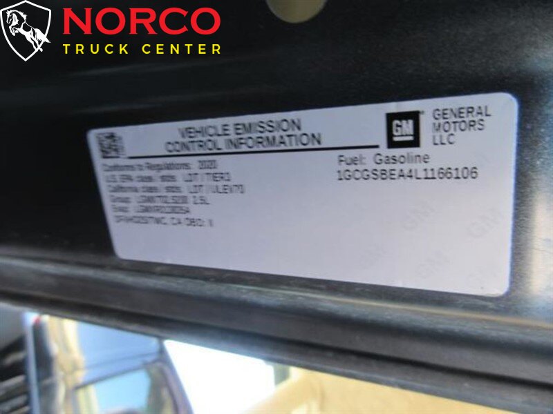 YOU ARE LOOKING AT A 2020 CHEVROLET COLORADO WITH A CREW CAB BODY. THIS VEHICLE HAS AN AT TRANSMISSION, L4, 2.5L; DOHC 16V ENGINE WITH 25995 MILES. THE DRIVETRAIN IS: RWD. PLEASE CALL NORCO TRUCK CENTER INC FOR MORE INFORMATION AT (951) 372-0354 OR COME SEE US AT ~ 2075 HAMNER AVE. NORCO, CA. 92860 ~ -- INSTALLED FEATURES: Air filtration, Front air conditioning, Front air conditioning zones: single, Airbag deactivation: occupant sensing passenger, Front airbags: dual, Side airbags: front, Side curtain airbags: front / rear, Side-curtain airbag rollover sensor, Antenna type: diversity / mast, Auxiliary audio input: Bluetooth / USB / iPod/iPhone / jack, Radio: AM/FM / touch screen display, Radio data system, Satellite radio: SiriusXM, Speed sensitive volume control, Total speakers: 6, ABS: 4-wheel, Braking assist, Electronic brakeforce distribution, Front brake diameter: 12.2, Front brake type: ventilated disc, Front brake width: 1.06, Power brakes, Rear brake diameter: 12.8, Rear brake type: ventilated disc, Rear brake width: 0.71, Floor mat material: carpet, Floor material: carpet, Floor mats: front / rear, Shift knob trim: urethane, Steering wheel trim: urethane, Assist handle: front / rear, Capless fuel filler system, Center console: front console with armrest and storage, Cupholders: front, One-touch windows: 1, Power outlet(s): 12V front, Power steering: variable/speed-proportional, Power windows: lockout button, Reading lights: front, Rearview mirror: manual day/night, Retained accessory power, Steering wheel: tilt, Storage: door pockets / in dash, Vanity mirrors: passenger, Axle ratio: 4.10, Battery: maintenance-free, Battery saver, Bumper detail: rear step, Door handle color: black, Front bumper color: body-color, Grille color: black with chrome accents, Mirror color: black, Pickup bed light, Rear bumper color: chrome, Window trim: black, Infotainment: Chevrolet Infotainment System, Infotainment screen size: 7 in., Smartphone integration: Android Auto / Apple CarPlay, Clock, Digital odometer, Driver information system, External temperature display, Fuel economy display: MPG / range, Gauge: oil pressure / tachometer, Instrument cluster screen size: 3.5 in., Multi-function display, Trip odometer, Warnings and reminders: low fuel level / low oil level / maintenance due / tire fill alert, Daytime running lights, Headlights: auto delay off / auto on/off / halogen, Side mirror adjustments: manual / manual folding, Body side reinforcements, Camera system: rearview, Check rear seat reminder, Child safety door locks, Child seat anchors: LATCH system, Programmable safety key, Rearview monitor: in dash, Emergency locking retractors: front, Front seatbelts: 3-point, Rear seatbelts: 3-point, Seatbelt force limiters: front, Seatbelt pretensioners: front, Seatbelt warning sensor: front, Driver seat manual adjustments: reclining, Driver seat power adjustments: height / 4, Front headrests: adjustable / 2, Front seat type: bucket, Passenger seat manual adjustments: reclining / 2, Rear headrests: foldable / 2, Rear seat folding: folds up, Rear seat type: bench, Upholstery: cloth, Anti-theft system: engine immobilizer, Power door locks: anti-lockout / auto-locking, Hill holder control, Stability control, Traction control, Trailer stability control, Steering ratio: 16.8, Turns lock-to-lock: 3.3, Front shock type: twin-tube gas, Front spring type: coil, Front stabilizer bar, Front struts, Front suspension classification: independent, Front suspension type: upper and lower control arms, Rear shock type: twin-tube gas, Rear spring type: leaf, Rear suspension classification: solid live axle, Rear suspension type: multi-leaf, Electronic messaging assistance: voice operated / with read function, Phone: voice operated, Wireless data link: Bluetooth, Spare tire mount location: underbody, Spare tire size: temporary, Spare wheel type: aluminum, Tire Pressure Monitoring System, Tire type: all season, Wheels: steel, Front wipers: variable intermittent, Power windows: safety reverse