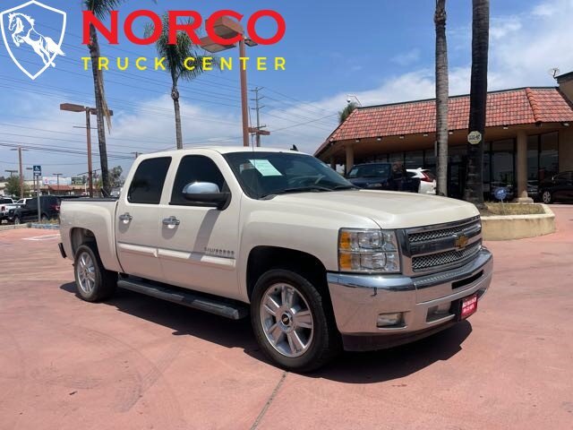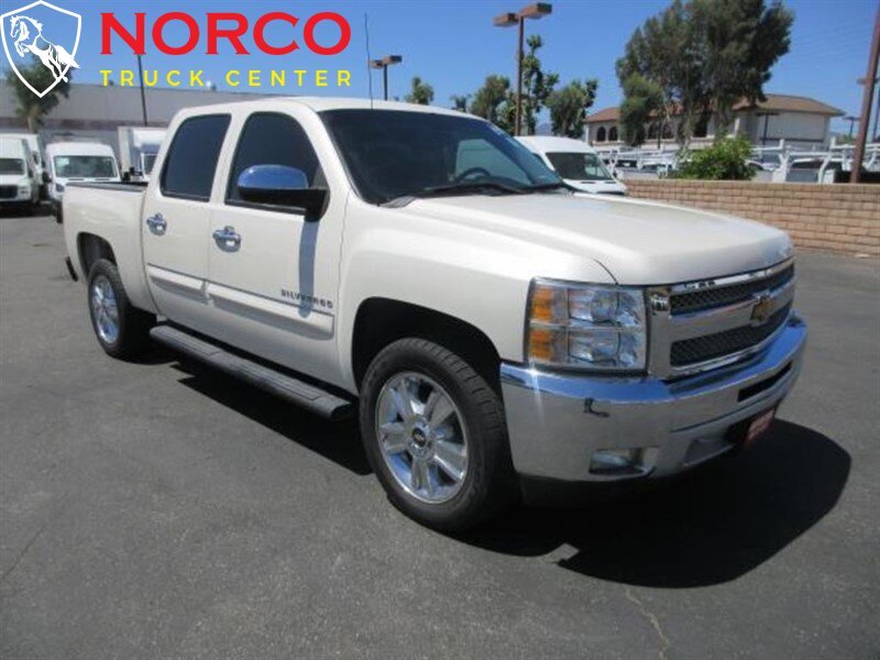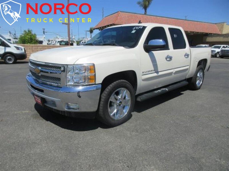 YOU ARE LOOKING AT A 2013 CHEVROLET SILVERADO C1500 WITH A 4 DOOR CAB; CREW BODY. THIS VEHICLE HAS AN AUTOMATIC TRANSMISSION, V8, 5.3L; FFV ENGINE WITH 66610 MILES. THE DRIVETRAIN IS: RWD. PLEASE CALL NORCO TRUCK CENTER INC FOR MORE INFORMATION AT (951) 372-0354 OR COME SEE US AT ~ 2075 HAMNER AVE. NORCO, CA. 92860 ~ -- INSTALLED FEATURES: Front air conditioning, Front air conditioning zones: single, Airbag deactivation: occupant sensing passenger, Front airbags: dual, Side airbags: front, Side curtain airbags: front / rear, Side-curtain airbag rollover sensor, Antenna type: element, In-Dash CD: MP3 Playback / single disc, Radio: AM/FM, Radio data system, Satellite radio: SiriusXM, Speed sensitive volume control, Total speakers: 6, ABS: 4-wheel, Front brake diameter: 13.0, Front brake type: disc, Front brake width: 1.18, Power brakes, Rear brake diameter: 11.6, Rear brake type: drum, Floor mat material: rubber/vinyl, Floor material: carpet, Floor mats: front / rear, Steering wheel trim: leather, Assist handle: front / rear, Center console: front console with armrest and storage, Cruise control, Cupholders: front / rear, Multi-function remote: keyless entry / panic alarm, One-touch windows: 1, Power outlet(s): two 12V front, Power steering, Power windows: lockout button, Reading lights: front, Rearview mirror: manual day/night, Remote engine start prewiring, Retained accessory power, Steering wheel: tilt, Storage: in seat cushion / seatback, Vanity mirrors: dual illuminating, Axle ratio: 3.23, Alternator: 145 amps, Battery: heavy duty / maintenance-free, Battery rating: 600 CCA, Battery saver, Body side moldings: body-color, Door handle color: black, Exhaust tip color: stainless-steel, Front bumper color: chrome, Grille color: chrome surround, Mirror color: black, Pickup bed light, Pickup bed type: fleetside, Rear bumper color: chrome, Window trim: black, Compass, External temperature display, Gauge: oil pressure / tachometer / transmission temperature, Trip odometer, Warnings and reminders: coolant temperature warning / lamp failure / low fuel level / low oil pressure / tire fill alert, Daytime running lights, Headlights: auto on/off / halogen, Side mirror adjustments: manual folding / power, Side mirrors: heated, Child safety door locks, Child seat anchors, Front seatbelts: 3-point, Rear seatbelts: 3-point, Seatbelt warning sensor: front, Driver seat manual adjustments: lumbar / reclining / 4, Front headrests: adjustable / 2, Front seat type: 40-20-40 split bench, Passenger seat manual adjustments: reclining / 4, Rear headrests: 2, Rear seat folding: folds up, Rear seat type: 60-40 split bench, Upholstery: cloth, Anti-theft system: audio security system, Power door locks, Hill holder control, Roll stability control, Stability control, Traction control, Trailer stability control, Steering ratio: 16.7, Turns lock-to-lock: 3.0, Front shock type: monotube, Front spring type: coil, Front stabilizer bar: diameter 36 mm, Front struts, Front suspension classification: independent, Front suspension type: upper and lower control arms, Rear shock type: monotube, Rear spring type: leaf, Rear suspension classification: solid live axle, Rear suspension type: multi-leaf, Tuned suspension: heavy duty, Satellite communications: OnStar, Spare tire mount location: underbody, Spare tire size: full-size, Spare wheel type: steel, Tire Pressure Monitoring System, Tire type: all season, Wheels: chrome steel, Tow/Haul mode, Front wipers: intermittent, Power windows, Tinted glass