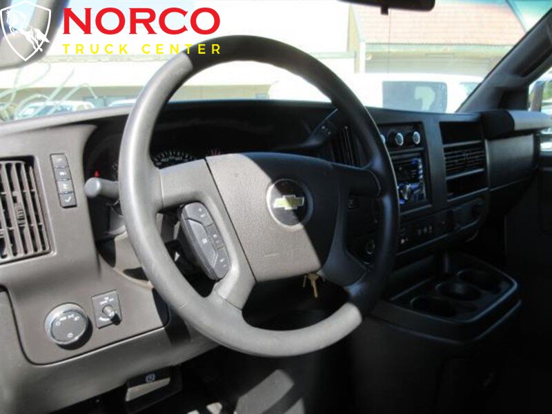YOU ARE LOOKING AT A 2018 CHEVROLET EXPRESS G1500 WITH A 3 DOOR VAN; CARGO BODY. THIS VEHICLE HAS AN AUTOMATIC TRANSMISSION, V6, 4.3L; FFV; VVT ENGINE WITH 135630 MILES. THE DRIVETRAIN IS: RWD. PLEASE CALL NORCO TRUCK CENTER INC FOR MORE INFORMATION AT (951) 372-0354 OR COME SEE US AT ~ 2075 HAMNER AVE. NORCO, CA. 92860 ~ -- INSTALLED FEATURES: Front air conditioning, Front air conditioning zones: single, Airbag deactivation: passenger switch, Front airbags: dual, Side airbags: front, Side curtain airbags: front, Side-curtain airbag rollover sensor, Antenna type: mast, Auxiliary audio input: jack, Radio: AM/FM, Total speakers: 2, ABS: 4-wheel, Electronic brakeforce distribution, Front brake diameter: 12.8, Front brake type: ventilated disc, Front brake width: 1.5, Power brakes, Rear brake diameter: 13.0, Rear brake type: ventilated disc, Rear brake width: 1.14, Armrests: front center, Floor material: rubber/vinyl, Steering wheel trim: urethane, Assist handle: front, Cargo area light: 3, Cupholders: front / 3, Power outlet(s): 115V front / 12V front, Power steering, Reading lights: front, Retained accessory power, Storage: cargo tie-down anchors and hooks / door pockets / in dash, Sun visors, Rear door type: barn, Side door type: passenger-side hinged swing-out, Axle ratio: 3.42, Alternator: 105 amps, Auxiliary oil cooler, Battery: maintenance-free, Battery rating: 600 CCA, Battery saver, Bumper detail: rear step, Door handle color: black, Front bumper color: black, Grille color: black, Mirror color: black, Rear bumper color: black, Window trim: black, Clock, Digital odometer, Engine hour meter, Fuel economy display: MPG / range, Gauge: oil pressure / tachometer, Multi-function display, Trip odometer, Warnings and reminders: low fuel level / maintenance due / tire fill alert, Daytime running lights, Headlights: auto on/off / halogen, Side mirror adjustments: manual / manual folding, OEM roof height: undefined, Body side reinforcements: side impact door beams, Camera system: rearview, Child seat anchors, Rearview monitor: in mirror, Front seatbelts: 3-point, Seatbelt pretensioners: front, Driver seat manual adjustments: reclining / 4, Front headrests: integrated / 2, Front seat type: bucket, Passenger seat manual adjustments: reclining / 4, Upholstery: vinyl, Anti-theft system: alarm / audio security system / engine immobilizer, Power door locks: anti-lockout, Hill holder control, Stability control, Traction control, Steering ratio: 17.2, Turns lock-to-lock: 3.0, Front shock type: gas, Front spring type: coil, Front stabilizer bar: diameter 35 mm, Front suspension classification: independent, Front suspension type: short and long arm, Rear shock type: gas, Rear spring type: leaf, Rear suspension classification: solid live axle, Rear suspension type: multi-leaf, Driver assistance app: roadside assistance, Satellite communications: OnStar / voice guided directions, Smart device app function: maintenance status, Wifi: hotspot, Spare tire mount location: underbody, Spare tire size: full-size matching, Spare wheel type: steel, Tire Pressure Monitoring System, Tire type: all season, Wheel covers: partial, Wheels: steel, Auxiliary transmission fluid cooler, Tow/Haul mode, Front wipers: intermittent, Power windows, Solar-tinted glass: front / rear, Window defogger: side
