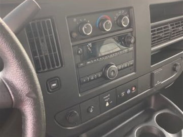 -- INSTALLED FEATURES: Front air conditioning, Front air conditioning zones: single, Airbag deactivation: passenger switch, Front airbags: dual, Side airbags: front, Side curtain airbags: front, Side-curtain airbag rollover sensor, Antenna type: mast, Auxiliary audio input: jack, Radio: AM/FM, Total speakers: 2, ABS: 4-wheel, Electronic brakeforce distribution, Front brake diameter: 12.8, Front brake type: ventilated disc, Front brake width: 1.5, Power brakes, Rear brake diameter: 13.0, Rear brake type: ventilated disc, Rear brake width: 1.14, Armrests: front center, Floor material: rubber/vinyl, Steering wheel trim: urethane, Assist handle: front, Cargo area light: 3, Cupholders: front / 3, Power outlet(s): 115V front / 12V front, Power steering, Reading lights: front, Retained accessory power, Storage: cargo tie-down anchors and hooks / door pockets / in dash, Sun visors, Rear door type: barn, Side door type: passenger-side hinged swing-out, Axle ratio: 3.42, Alternator: 105 amps, Auxiliary oil cooler, Battery: maintenance-free, Battery rating: 600 CCA, Battery saver, Bumper detail: rear step, Door handle color: black, Front bumper color: black, Grille color: black, Mirror color: black, Rear bumper color: black, Window trim: black, Clock, Digital odometer, Engine hour meter, Fuel economy display: MPG / range, Gauge: oil pressure / tachometer, Multi-function display, Trip odometer, Warnings and reminders: low fuel level / maintenance due / tire fill alert, Daytime running lights, Headlights: auto on/off / halogen, Side mirror adjustments: manual / manual folding, OEM roof height: undefined, Body side reinforcements: side impact door beams, Camera system: rearview, Child seat anchors, Rearview monitor: in mirror, Front seatbelts: 3-point, Seatbelt pretensioners: front, Driver seat manual adjustments: reclining / 4, Front headrests: integrated / 2, Front seat type: bucket, Passenger seat manual adjustments: reclining / 4, Upholstery: vinyl, Anti-theft system: alarm / audio security system / engine immobilizer, Power door locks: anti-lockout, Hill holder control, Stability control, Traction control, Steering ratio: 17.2, Turns lock-to-lock: 3.0, Front shock type: gas, Front spring type: coil, Front stabilizer bar: diameter 35 mm, Front suspension classification: independent, Front suspension type: short and long arm, Rear shock type: gas, Rear spring type: leaf, Rear suspension classification: solid live axle, Rear suspension type: multi-leaf, Driver assistance app: roadside assistance, Satellite communications: OnStar / voice guided directions, Smart device app function: maintenance status, Wifi: hotspot, Spare tire mount location: underbody, Spare tire size: full-size matching, Spare wheel type: steel, Tire Pressure Monitoring System, Tire type: all season, Wheel covers: partial, Wheels: steel, Auxiliary transmission fluid cooler, Tow/Haul mode, Front wipers: intermittent, Power windows, Solar-tinted glass: front / rear, Window defogger: side