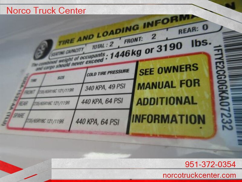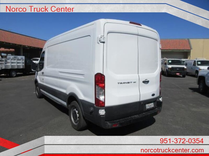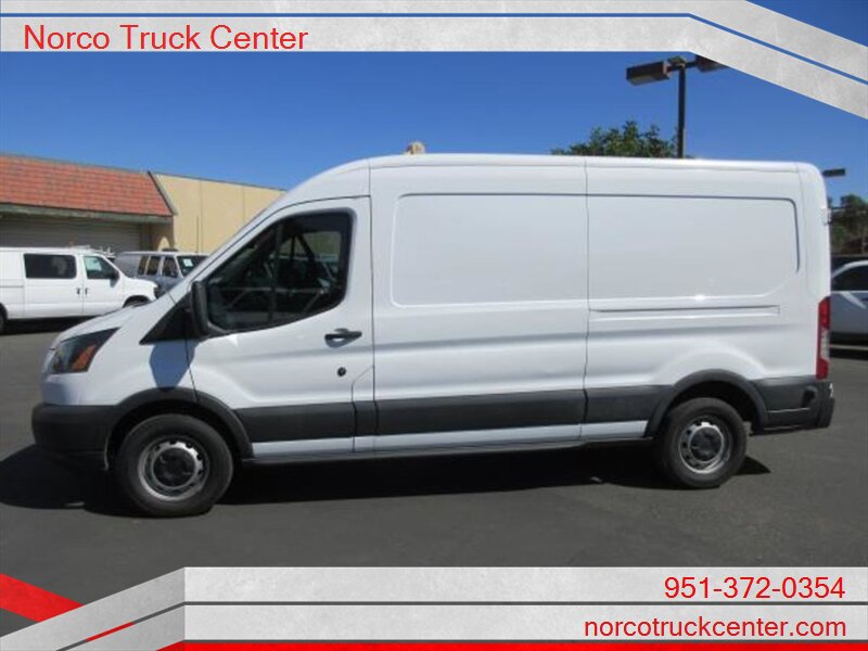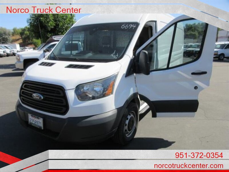 YOU ARE LOOKING AT A 2016 FORD TRANSIT VAN MED ROOF WITH A 4 DOOR VAN CARGO BODY. THIS VEHICLE HAS AN AT TRANSMISSION, V6, 3.5L; TURBO ENGINE WITH 121349 MILES. THE DRIVETRAIN IS: RWD. PLEASE CALL NORCO TRUCK CENTER INC FOR MORE INFORMATION AT (951) 372-0354 OR COME SEE US AT ~ 2075 HAMNER AVE. NORCO, CA. 92860 ~ -- INSTALLED FEATURES: Front air conditioning, Front air conditioning zones: single, Airbag deactivation: passenger switch, Front airbags: dual, Side airbags: front, Side curtain airbags: front, Antenna type: mast, Auxiliary audio input: jack, Radio: AM/FM, Total speakers: 2, ABS: 4-wheel, Braking assist, Electronic brakeforce distribution, Front brake diameter: 12.1, Front brake type: ventilated disc, Power brakes, Rear brake diameter: 12.1, Rear brake type: disc, Armrests: drivers seat, Floor material: rubber/vinyl, Shift knob trim: urethane, Steering wheel trim: urethane, Assist handle: passenger side, Capless fuel filler system, Cargo area light, Center console: front console with storage, Cupholders: front, Multi-function remote: keyless entry, One-touch windows: 1, Overhead console: front, Power outlet(s): 12V front, Power steering, Reading lights: front, Rearview mirror: manual day/night, Retained accessory power, Steering wheel: tilt and telescopic, Storage: cargo tie-down anchors and hooks / door pockets, Sun visors, Rear door type: barn, Side door type: passenger-side manual sliding, Axle ratio: 3.73, Alternator: 150 amps, Battery: maintenance-free, Body side moldings: black, Bumper detail: rear step, Door handle color: black, Front bumper color: black, Grille color: black / black surround, Headlight bezel color: black, Mirror color: black, Rear bumper color: black, Window trim: black, Clock, Digital odometer, Gauge: tachometer, Warnings and reminders: low fuel level / tire fill alert, Headlights: halogen, Side mirror adjustments: manual folding / power, OEM roof height: medium, Camera system: rearview, Impact sensor: post-collision safety system, Rearview monitor: in mirror, Front seatbelts: 3-point, Seatbelt pretensioners: front, Seatbelt warning sensor: front, Driver seat manual adjustments: reclining / 4, Front headrests: adjustable / 2, Front seat type: bucket, Passenger seat manual adjustments: reclining / 4, Upholstery: vinyl, Power door locks: auto-locking, Hill holder control, Roll stability control, Stability control, Traction control, Front shock type: gas, Front spring type: coil, Front stabilizer bar, Front struts: MacPherson, Front suspension classification: independent, Front suspension type: lower control arms, Rear shock type: gas, Rear spring type: leaf, Rear suspension classification: solid live axle, Rear suspension type: multi-leaf, Spare tire mount location: underbody, Spare tire size: full-size, Spare wheel type: steel, Tire Pressure Monitoring System, Tire type: all season, Wheel covers: partial, Wheels: steel, Front wipers: variable intermittent, Power windows, Solar-tinted glass