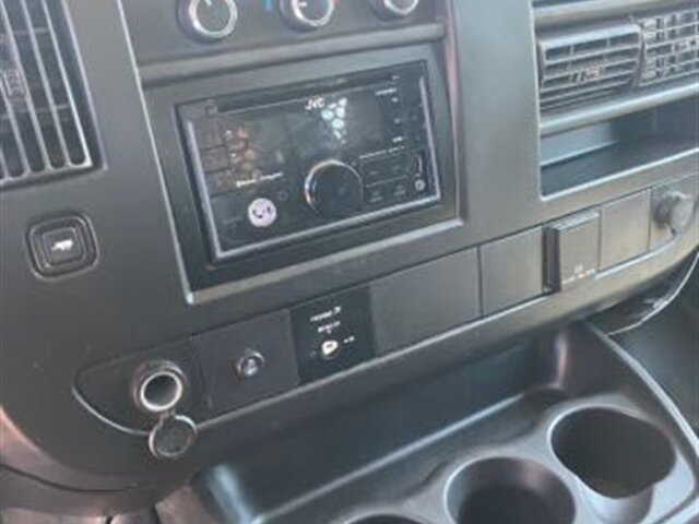 INSTALLED FEATURES: Front air conditioning, Front air conditioning zones: single, Airbag deactivation: passenger switch, Front airbags: dual, Side airbags: front, Side curtain airbags: front, Side-curtain airbag rollover sensor, Antenna type: mast, Auxiliary audio input: jack, Radio: AM/FM, Total speakers: 2, ABS: 4-wheel, Electronic brakeforce distribution, Front brake diameter: 12.8, Front brake type: ventilated disc, Front brake width: 1.5, Power brakes, Rear brake diameter: 13.0, Rear brake type: ventilated disc, Rear brake width: 1.14, Armrests: front center, Floor material: rubber/vinyl, Steering wheel trim: urethane, Assist handle: front, Cargo area light: 3, Cupholders: front / 3, Power outlet(s): 115V front / 12V front, Power steering, Reading lights: front, Retained accessory power, Storage: cargo tie-down anchors and hooks / door pockets / in dash, Sun visors, Rear door type: barn, Side door type: passenger-side hinged swing-out, Axle ratio: 3.42, Alternator: 105 amps, Auxiliary oil cooler, Battery: maintenance-free, Battery rating: 600 CCA, Battery saver, Bumper detail: rear step, Door handle color: black, Front bumper color: black, Grille color: black, Mirror color: black, Rear bumper color: black, Window trim: black, Clock, Digital odometer, Engine hour meter, Fuel economy display: MPG / range, Gauge: oil pressure / tachometer, Multi-function display, Trip odometer, Warnings and reminders: low fuel level / maintenance due / tire fill alert, Daytime running lights, Headlights: auto on/off / halogen, Side mirror adjustments: manual / manual folding, OEM roof height: undefined, Body side reinforcements: side impact door beams, Camera system: rearview, Child seat anchors, Rearview monitor: in mirror, Front seatbelts: 3-point, Seatbelt pretensioners: front, Driver seat manual adjustments: reclining / 4, Front headrests: integrated / 2, Front seat type: bucket, Passenger seat manual adjustments: reclining / 4, Upholstery: vinyl, Anti-theft system: alarm / audio security system / engine immobilizer, Power door locks: anti-lockout, Hill holder control, Stability control, Traction control, Steering ratio: 17.2, Turns lock-to-lock: 3.0, Front shock type: gas, Front spring type: coil, Front stabilizer bar: diameter 35 mm, Front suspension classification: independent, Front suspension type: short and long arm, Rear shock type: gas, Rear spring type: leaf, Rear suspension classification: solid live axle, Rear suspension type: multi-leaf, Driver assistance app: roadside assistance, Satellite communications: OnStar / voice guided directions, Smart device app function: maintenance status, Wifi: hotspot, Spare tire mount location: underbody, Spare tire size: full-size matching, Spare wheel type: steel, Tire Pressure Monitoring System, Tire type: all season, Wheel covers: partial, Wheels: steel, Auxiliary transmission fluid cooler, Tow/Haul mode, Front wipers: intermittent, Power windows, Solar-tinted glass: front / rear, Window defogger: side