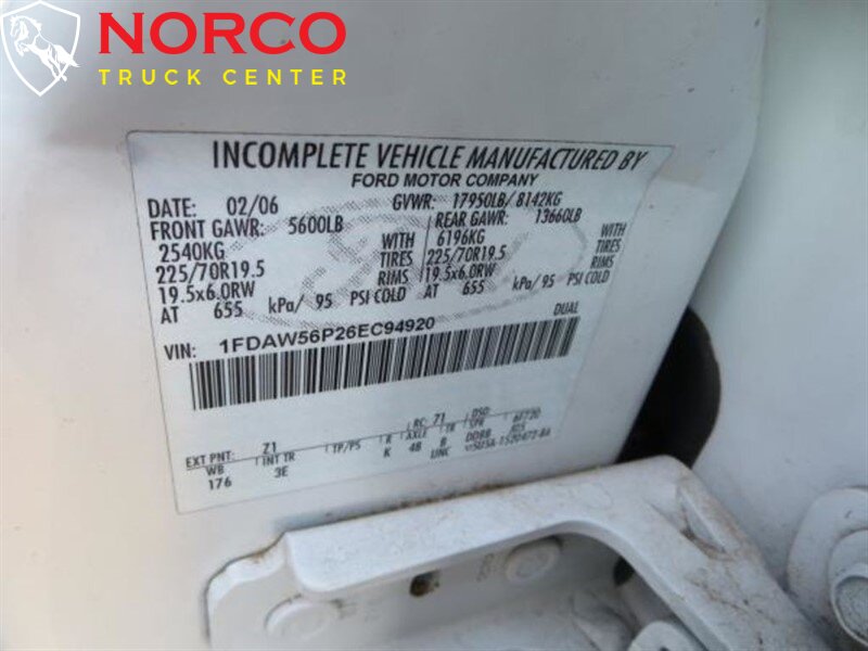 BRAKE TYPE: FBAAJ0 : With 4 Wheel Disc Brake Hydro-Boost WHEEL REAR DUAL: D2AAC0 : With Double Rear Wheels GVW: AAZR10 : 17,950 LB. GVW TRANSMISSION POWER TAKEOFF: FMJAA5 : Less Transmission Power Take Off B&A CONTROL CODES ISSUE 030388: TAPAA5 : Less B&A Control Codes Issue 030388 SUSPENSION FRONT: DYAAE0 : With Standard Duty Front Suspension PAYLOAD PACKAGES: AA3BE0 : With Base Payload Package WHEEL SIZE/STYLE 19.5 INCH: D2ZAD0 : 6.0 X 19.5" Aluminum Wheels STEERING COLUMN: GRAAC0 : With Tilt Steering Wheel LAMP ENGINE COMPARTMENT LIGHT: JCCAB0 : Engine Compartment Light SPEED CONTROL: GTDAB0 : With Speed Control SEAT D RING DRIVER FRONT SEAT: CPIAB0 : Adjustable'D'Ring-Drivers Seat Belt TIRE 19 INCH CAR / LT TRK: D3IAB0 : 225/70R-19.5" F BSW All Season Tire FLOOR COVERING PASS AREA TRUCK: BBKAJ0 : With Vinyl Floor Covering LOCK DOOR: CBAAB0 : With Power Door Locking SALES OFFICES: AAHAB0 : U.S. Sales SKID PLATES: FMNAA5 : Less Skid Plates LOCK DOOR ENTRY REMOTE CNTR UNIT: CBFAB0 : With Door Entry Remote Control Unit SPRING REAR AUXILIARY: DZBBB0 : Single Leaf Rear Auxiliary Spring BRAKE CONTROL VALVE: FDDAD0 : Integrated Brake Control INTERIOR TRIM CODE: C0T3E1 : 3E FUEL ENGINE FUEL CAPABILITY: GBVAJ0 : With Diesel Fuel Capability EXTERIOR PAINT BODY TU TONE: CJDAA5 : Less Body Tu-Tone Paint AMBIENT TEMP SPEED PACK: ABTAA5 : Less Ambient Temp/Speed Pack PLANT NORTH AMERICAN PLANT BUILD: ADLAA0 : WINDOW TINT: B2GAB0 : Green Tinted PLANT BUILD REQUIREMENTS: AAGA10 : Kentucky Truck Plant Build MILITARY REQUIREMENTS: ABDAA5 : Less Military Vehicles FEATURE CONTENT GROUP: AD2AB0 : FEATURE CONTENT GROUP 1 TIE DOWN HOOK INSIDE: A9JAA5 : Less Tie Down Hooks TRANSMISSION TRANSFER CASE: FMLAA5 : Less Transfer Case TIRE CARRIER SPARE: CSHAA5 : Less Tire Carrier TAILGATE LOCK: A7EAA5 : Less Tailgate Lock VISOR SUNVISORS DRIVER: BCAAL0 : Sunvisor - Single Driver W/Strap ENGINE HEATER: DEBAA5 : Less Immersion Heater WINDOW REAR: B3HAC0 : With Fixed Rear Window MIRROR INTERIOR REAR VIEW: BSBAB0 : Day/Night Inside Mirror SPRING LEAF RIGHT FRONT: TAIBI0 : F81A-5310-AGD (5600 LB.) #2 EXTERIOR APPEARANCE GROUP: AB2AA5 : Less Appearance Group VERSION EXTERIOR APPEARANCE PACK: ABFAA5 : Less Exterior Appearance Pack JACKS: AHDAA5 : Less Jack MIRROR EXTERIOR FINISH: BSLAB0 : With Black Exterior Mirror GRILLE FRONT: BLDAE0 : With Bright Front Grille TRAILER TOWING ATTACHMENTS: C1DAA5 : Less Trailer Towing Attachments ROOF OPENING PANELS: CHAAA5 : Less Sun Roof INSTRUMENTATION SPEEDOMETERS: HDHAB0 : With MPH/KMH Speedometer EXTERIOR DOOR HANDLE: CAAAB0 : Exterior Door Handle - Black RUNNING BOARD STEP SIDE AUXILIARY: BPLAB0 : Painted Side Step Less Lights TRAILER TOWING: C1CAA5 : Less Trailer Towing AIRBAG RESTRAINT PASS: CPHAB0 : With Passenger Air Bag SEAT FRONT: FS00S0 : With 40/20/40 Split Bench Frnt Seat LOCK KEYLESS ENTRY SYSTEM: CBGAD0 : With Keyless Entry LAMP HEADLAMP CONTROL: JEDAC0 : With Automatic Headlamp Control AUDIO RADIO: IBABE0 : Elect Prem Stro/Cass/Disc/Clock WINDOW FRONT SIDE: B2CAC0 : With Power Front Windows Air Conditioning: AC0B0 : Manual Air Conditioning LAMP HIGH MOUNT STOP LAMP: JDDAA5 : Less High Mounted Stop Lamp STEERING WHEEL: GTAAB0 : Basic Type Steering Wheel SUSPENSION ATTITUDE/RIDE HEIGHT: DWEAA5 : Less Attitude/Ride Height Pack BOX BED SECOND UNIT BODY: A9CAA5 : Less Second Unit Body SEAT TEMP CONTROLLED PASSENGER: BY2AA5 : Less Temp Control Passenger Seat SPRING LEAF LEFT FRONT: TAHBI0 : F81A-5310-AGD (5600 LB.) VERSION: AAAAD0 : XLT ENGINE EMISSION REQUIREMENTS: DGAAE0 : 50 State Emission Requirements BUMPER REAR: CLMAA5 : Less Rear Bumper VERSION PACKAGES: AACAA5 : Less Version Packages WINDOW REAR SIDE: B2DAC0 : With Electric Rear Windows MOULDING EXTERIOR LOWER: BMLAA5 : Less Lower Body Moulding AIRBAG RESTRAINT DRIVER: CPGAB0 : With Driver Air Bag LAMP HEADLAMP RUNNING: JBCAA5 : Less Daytime Running Lamps LABEL SPECIAL LANGUAGE: AEAAE0 : With English Language Label CONSOLE FLOOR: B5WAA5 : Less Floor Mounte