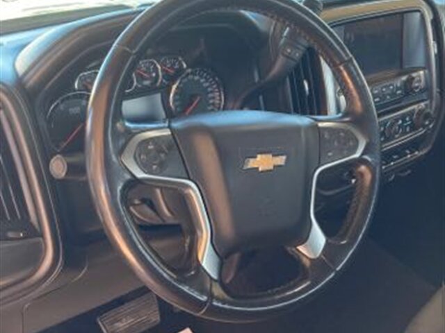 INSTALLED FEATURES: Air filtration, Front air conditioning: automatic climate control, Front air conditioning zones: dual, Airbag deactivation: occupant sensing passenger, Front airbags: dual, Side airbags: front, Side curtain airbags: front / rear, Side-curtain airbag rollover sensor, Antenna type: diversity / element, Auxiliary audio input: Bluetooth / MP3 / USB / iPod/iPhone / jack / memory card slot, In-Dash CD: MP3 Playback / single disc, Radio: AM/FM / HD radio / touch screen display / voice operated, Radio data system, Satellite radio: SiriusXM, Speed sensitive volume control, Total speakers: 6, ABS: 4-wheel, Braking assist, Front brake diameter: 13.8, Front brake type: disc, Front brake width: 1.6, Power brakes, Rear brake diameter: 14.2, Rear brake type: disc, Rear brake width: 1.3, Armrests: front center, Floor mat material: rubber/vinyl, Floor material: carpet, Floor mats: front / rear, Steering wheel trim: leather, Assist handle: front / rear, Cruise control, Memorized settings: 2 driver / driver seat, Multi-function remote: keyless entry / panic alarm, One-touch windows: 4, Power outlet(s): 115V, Power steering, Power windows: lockout button, Reading lights: front, Rearview mirror: auto-dimming, Remote engine start, Retained accessory power, Steering wheel: tilt, Steering wheel mounted controls: audio / cruise control, Storage: front seatback, Universal remote transmitter, Vanity mirrors: dual illuminating, Axle ratio: 4.10, Locking differential: rear, Alternator: 150 amps, Auxiliary engine cooler, Auxiliary oil cooler, Battery: heavy duty / maintenance-free, Battery rating: 720 CCA, Battery saver, Body side moldings: chrome, Bumper detail: rear step, Door handle color: chrome, Exhaust tip color: stainless-steel, Front bumper color: chrome, Grille color: chrome surround, Mirror color: chrome, Pickup bed light, Pickup bed type: wideside, Rear bumper color: chrome, Tailgate: lift assist, Tailgate protection cap, Window trim: black, Infotainment: MyLink, Infotainment screen size: 8 in., Clock, Digital odometer, Driver information system, Gauge: oil pressure / tachometer, Instrument cluster screen size: 4.2 in., Trip odometer, Warnings and reminders: low fuel level / tire fill alert, Daytime running lights, Exterior entry lights: approach lamps / puddle lamps, Front fog lights, Headlights: halogen, Side mirror adjustments: power / power folding, Side mirror type: spotter mirror, Side mirrors: driver side auto-dimming / heated / integrated turn signals, Camera system: rearview, Child safety door locks, Child seat anchors, Rearview monitor: in dash, Front seatbelts: 3-point, Rear seatbelts: 3-point, Seatbelt pretensioners: front, Seatbelt warning sensor: front, Driver seat: heated, Driver seat power adjustments: height / lumbar / reclining / 10, Front headrests: adjustable / 2, Front seat type: 40-20-40 split bench, Passenger seat: heated, Passenger seat power adjustments: height / lumbar / reclining / 10, Rear headrests: adjustable / 2, Rear seat folding: folds up, Rear seat type: 60-40 split bench, Upholstery: leather-trimmed, 2-stage unlocking doors, Anti-theft system: alarm, Power door locks, Hill holder control, Roll stability control, Stability control, Traction control, Trailer stability control, Steering ratio: 16.1, Turns lock-to-lock: 3.6, Front shock type: twin-tube gas, Front spring type: torsion bars, Front stabilizer bar: diameter 33 mm, Front suspension classification: independent, Front suspension type: short and long arm, Rear shock type: twin-tube gas, Rear spring type: leaf, Rear suspension classification: solid live axle, Rear suspension type: multi-leaf, Phone: voice operated, Satellite communications: OnStar, Wireless data link: Bluetooth, Spare tire mount location: underbody, Spare tire size: full-size, Spare wheel type: steel, Tire Pressure Monitoring System, Tire type: all season, Wheels: polished aluminum, Auxiliary transmission fluid cooler, Integrated trailer brake controller, Tow hooks: front, Tow/Haul mode, Trailer hitch, Trailer wiring: 7-pin, Front wipers: variable intermittent, Power windows, Tinted glass, Window defogger: rear
