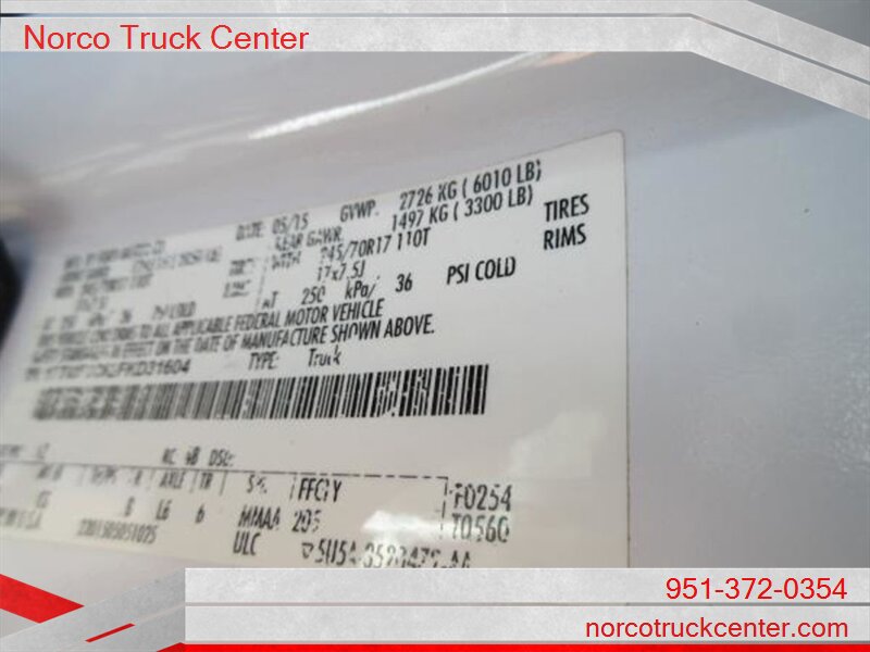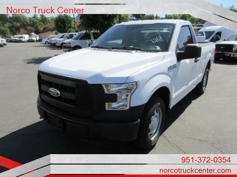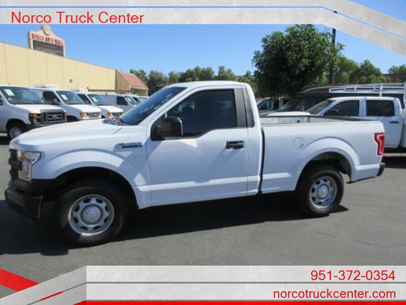 <ul><li><P style= "BORDER-TOP-COLOR: ; BORDER-LEFT-COLOR: ; BORDER-BOTTOM-COLOR: ; BORDER-RIGHT-COLOR: " >YOU ARE LOOKING AT A 2015 FORD F-150 WITH A 2 DOOR CAB; REGULAR; STYLESIDE BODY. THIS VEHICLE HAS AN AUTMATIC TRANSMISSION, V6, 3.5L ENGINE WITH 58727 MILES. THE DRIVETRAIN IS: RWD. PLEASE CALL NORCO TRUCK CENTER INC FOR MORE INFORMATION AT (951) 372-0354 OR COME SEE US AT ~ 2075 HAMNER AVE. NORCO, CA. 92860 ~ </P > <P style= "BORDER-TOP-COLOR: ; BORDER-LEFT-COLOR: ; BORDER-BOTTOM-COLOR: ; BORDER-RIGHT-COLOR: " > </P ></li></ul> -- INSTALLED FEATURES: Front air conditioning, Front air conditioning zones: single, Airbag deactivation: occupant sensing passenger, Front airbags: dual, Side airbags: front, Side curtain airbags: front, Antenna type: mast, Radio: AM/FM, Total speakers: 4, ABS: 4-wheel, Electronic brakeforce distribution, Electronic parking brake, Emergency braking preparation, Front brake diameter: 13.8, Front brake type: ventilated disc, Front brake width: 1.34, Power brakes, Rear brake diameter: 13.2, Rear brake type: ventilated disc, Rear brake width: 0.87, Armrests: front center, Door sill trim: scuff plate, Floor material: rubber/vinyl, Interior accents: chrome, Ashtray, Assist handle: front, Capless fuel filler system, Cupholders: front, Lighter element, Power outlet(s): 12V front, Power steering, Rearview mirror: manual day/night, Steering wheel: tilt and telescopic, Storage: door pockets, Vanity mirrors: passenger, Axle ratio: 3.55, Door handle color: black, Front bumper color: black, Grille color: black / black surround, Mirror color: black, Pickup bed light, Pickup bed type: styleside, Rear bumper color: black, Tailgate: removable, Window trim: black, Infotainment screen size: 4.2 in., Clock, External temperature display, Gauge: tachometer, Instrument cluster screen size: 2.3 in., Multi-function display, Warnings and reminders: low fuel level / low oil level / maintenance due / tire fill alert, Headlights: halogen, Taillights: rear center, Side mirror adjustments: manual / manual folding, Body side reinforcements: side impact door beams, Impact sensor: post-collision safety system, Emergency locking retractors: front, Front seatbelts: 3-point, Seatbelt force limiters: front, Seatbelt pretensioners: front, Driver seat manual adjustments: 2, Front headrests: adjustable / 3, Front seat type: 40-20-40 split bench, Passenger seat manual adjustments: reclining / 2, Upholstery: cloth, Anti-theft system: engine immobilizer, Hill holder control, Roll stability control, Stability control, Traction control, Trailer stability control, Steering ratio: 20, Front shock type: gas, Front spring type: coil, Front stabilizer bar, Front struts, Front suspension classification: independent, Front suspension type: double wishbone, Rear shock type: gas, Rear spring type: leaf, Rear suspension classification: solid live axle, Rear suspension type: multi-leaf, Spare tire mount location: underbody, Spare tire size: full-size, Spare wheel type: steel, Tire Pressure Monitoring System, Tire type: all season, Wheel locks: spare only, Wheels: steel, Cargo tie downs, Trailer wiring: 4-pin, Front wipers: intermittent, Solar-tinted glass: rear