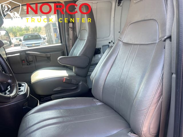 -- INSTALLED FEATURES: Front air conditioning, Front air conditioning zones: single, Airbag deactivation: passenger switch, Front airbags: dual, Side airbags: front, Side curtain airbags: front, Antenna type: mast, Auxiliary audio input: jack, Radio: AM/FM, Total speakers: 2, ABS: 4-wheel, Electronic brakeforce distribution, Front brake diameter: 12.8, Front brake type: ventilated disc, Front brake width: 1.5, Power brakes, Rear brake diameter: 13.0, Rear brake type: ventilated disc, Rear brake width: 1.14, Armrests: dual front, Floor material: cargo area rubber/vinyl / rubber/vinyl, Steering wheel trim: urethane, Assist handle: front, Cargo area light, Cupholders: front / 3, Power outlet(s): 115V front / 12V front, Power steering, Reading lights: front, Rearview mirror: manual day/night, Storage: cargo tie-down anchors and hooks / door pockets / in dash, Sun visors, Axle ratio: 3.42, Alternator: 105 amps, Auxiliary oil cooler, Battery: maintenance-free, Battery rating: 600 CCA, Battery saver, Bumper detail: rear step, Door handle color: black, Exhaust tip color: stainless steel, Front bumper color: black, Grille color: black, License plate bracket: front, Mirror color: black, Rear bumper color: black, Rear trunk/liftgate: barn, Side door type: passenger-side hinged swing-out, Window trim: black, Clock, Digital odometer, Fuel economy display: MPG / range, Gauge: oil pressure / tachometer, Multi-function display, Powertrain hour meter, Trip odometer, Warnings and reminders: low fuel level / maintenance due, Daytime running lights, Headlights: auto on/off / halogen, Side mirror adjustments: manual folding / power, Side mirrors: heated, OEM roof height: undefined, Camera system: rearview, Child seat anchors, Rearview monitor: in mirror, Front seatbelts: 3-point, Seatbelt pretensioners: front, Driver seat manual adjustments: reclining / 4, Front headrests: integrated / 2, Front seat type: bucket, Passenger seat manual adjustments: reclining / 4, Upholstery: vinyl, Anti-theft system: vehicle immobilizer, Power door locks: anti-lockout, Hill holder control, Stability control, Traction control, Steering ratio: 17.2, Turns lock-to-lock: 3.0, Front shock type: gas, Front spring type: coil, Front stabilizer bar: diameter 35 mm, Front suspension classification: independent, Front suspension type: short and long arm, Rear shock type: gas, Rear spring type: leaf, Rear suspension classification: solid live axle, Rear suspension type: multi-leaf, Driver assistance app: roadside assistance, Satellite communications: OnStar / voice guided directions, Smart device app compatibility: myChevrolet with Connected Access, Smart device app function: maintenance status, Wi-Fi: hotspot, Spare tire mount location: underbody, Spare tire size: full-size matching, Spare wheel type: steel, Tire Pressure Monitoring System, Tire type: all season, Wheel covers: partial, Wheels: steel, Tow/Haul mode, Front wipers: intermittent, Power windows, Solar-tinted glass: front / rear, Window defogger: side