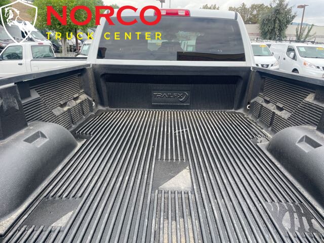 -- INSTALLED FEATURES: Front air conditioning, Front air conditioning zones: single, Rear vents: second row, Airbag deactivation: occupant sensing passenger, Front airbags: dual, Side airbags: front, Side curtain airbags: front / rear, Antenna type: mast, Auxiliary audio input: Bluetooth / USB / jack, Radio: AM/FM / touch screen display / voice operated, Radio data system, Speed sensitive volume control, Total speakers: 6, ABS: 4-wheel, Brake drying, Braking assist, Electronic brakeforce distribution, Emergency braking preparation, Front brake diameter: 14.2, Front brake type: ventilated disc, Front brake width: 1.54, Power brakes, Rear brake diameter: 14.1, Rear brake type: ventilated disc, Rear brake width: 1.34, Armrests: front center, Cargo area floor mat: rubber/vinyl, Dash trim: alloy, Door sill trim: scuff plate, Door trim: alloy, Floor mat material: rubber/vinyl, Floor material: carpet, Floor mats: front / rear, Steering wheel trim: urethane, Assist handle: front / rear, Cruise control, Cupholders: front, Multi-function remote: keyless entry / panic alarm, One-touch windows: 2, Overhead console: front, Power outlet(s): 12V front / USB front, Power steering, Power windows: lockout button, Push-button start, Reading lights: front, Rearview mirror: manual day/night, Steering wheel: tilt, Steering wheel mounted controls: cruise control / multi-function / phone / voice control, Storage: accessory hook / door pockets / under rear seats, Vanity mirrors: passenger illuminating, 4WD selector: electronic hi-lo, 4WD type: part time, Axle ratio: 3.73, Alternator: 180 amps, Auxiliary oil cooler, Battery: maintenance-free, Battery rating: 730 CCA, Battery saver, Emissions: 50 state, Active grille shutters, Door handle color: body-color, Front bumper color: chrome, Grille color: black / chrome surround, Headlight bezel color: chrome, Mirror color: black, Pickup bed light, Rear bumper color: chrome, Tailgate: power locking / removable, Window trim: black, Infotainment: Uconnect, Infotainment screen size: 5 in., Clock, Compass, Digital odometer, External temperature display, Fuel economy display: MPG / range, Gauge: tachometer, Instrument cluster screen size: 3.5 in., Multi-function display, Powertrain hour meter, Trip odometer, Warnings and reminders: low fuel level / low oil level / maintenance due, Daytime running lights, Exterior entry lights: approach lamps / puddle lamps, Headlights: auto delay off / auto on/off / halogen / quad headlights, Side mirror adjustments: manual folding / manual telescoping / power, Side mirrors: heated / integrated turn signals, Towing mirrors, Camera system: rearview, Child safety door locks, Child seat anchors: LATCH system, Crumple zones: front, Rearview monitor: in dash, Emergency locking retractors: front / rear, Front seatbelts: 3-point, Rear seatbelts: 3-point, Seatbelt force limiters: front, Seatbelt pretensioners: front, Seatbelt warning sensor: front, Driver seat manual adjustments: reclining / 4, Front headrests: adjustable / 2, Front seat type: 40-20-40 split bench, Passenger seat manual adjustments: reclining / 4, Rear headrests: adjustable / 3, Rear seat folding: folds up, Rear seat type: bench, Upholstery: cloth, Anti-theft system: vehicle immobilizer, Power door locks: auto-locking, Hill holder control, Roll stability control, Stability control, Traction control, Trailer stability control, Front shock type: gas, Front spring type: coil, Front stabilizer bar, Front suspension classification: solid live axle, Front suspension type: multi-link, Rear shock type: gas, Rear spring type: coil, Rear stabilizer bar, Rear suspension classification: solid live axle, Rear suspension type: multi-link, Suspension control: frequency selective, Electronic messaging assistance: voice operated / with read function, Phone: voice operated, Wireless data link: Bluetooth, Spare tire mount location: underbody, Spare tire size: full-size, Spare wheel type: steel, Tire Pressure Monitoring System, Tire type: all season, Wheels: chrome clad, Auxiliary transmission fluid cooler, Pickup bed cargo management: tie-down anchors, Trailer brake controller, Trailer hitch: Class V, Trailer wiring: 4-pin / 7-pin, Front wipers: variable intermittent, Laminated glass: acoustic, Power windows: safety reverse, Rear privacy glass, Solar-tinted glass
