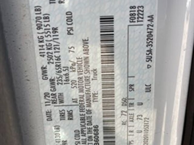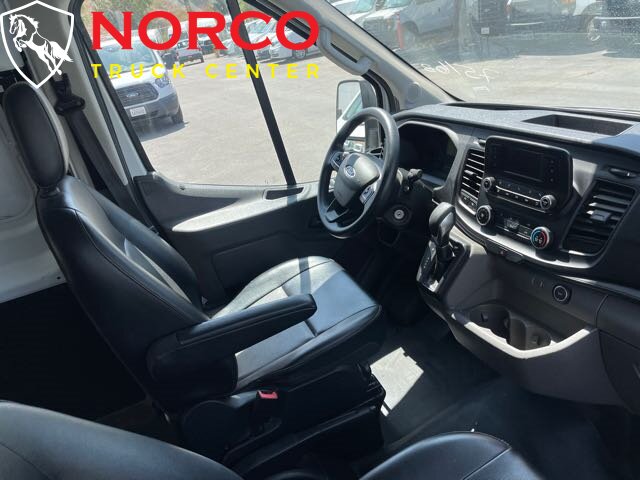 -- INSTALLED FEATURES: Front air conditioning, Front air conditioning zones: single, Airbag deactivation: passenger switch, Front airbags: dual, Side airbags: front, Side curtain airbags: front, Antenna type: mast, Auxiliary audio input: Bluetooth / USB, Radio: AM/FM, Total speakers: 4, ABS: 4-wheel, Braking assist, Cornering brake control, Electronic brakeforce distribution, Emergency braking preparation, Front brake diameter: 12.1, Front brake type: ventilated disc, Power brakes, Rear brake diameter: 12.1, Rear brake type: ventilated disc, Armrests: dual front, Floor material: rubber/vinyl, Shift knob trim: urethane, Steering wheel trim: urethane, Assist handle: front / rear, Capless fuel filler system, Cargo area light, Center console: front console with storage, Cupholders: front, Multi-function remote: keyless entry / panic alarm / trunk release, Overhead console: front, Power outlet(s): 12V front, Power steering: variable/speed-proportional, Reading lights: front, Steering wheel: tilt and telescopic, Steering wheel mounted controls: audio / multi-function / phone, Storage: cargo tie-down anchors and hooks / door pockets, Sun visors, Axle ratio: 3.73, Alternator: 250 amps, Battery: maintenance-free, Battery rating: 610 CCA, Body side moldings: black, Door handle color: black, Front bumper color: black, Grille color: black / black surround, Mirror color: black, Rear bumper color: black, Rear trunk/liftgate: barn, Side door type: passenger-side manual sliding, Window trim: black, Infotainment screen size: 4 in., Clock, Digital odometer, Gauge: tachometer, Trip odometer, Warnings and reminders: low fuel level, Headlights: auto high beam dimmer / halogen / wiper activated, Side mirror adjustments: manual folding / power, OEM roof height: medium, Automatic emergency braking: front, Camera system: rearview, Driver attention alert system, Impact sensor: door unlock / post-collision safety system, Lane deviation sensors, Pre-collision warning system: audible warning / visual warning, Rearview monitor: in dash, Front seatbelts: 3-point, Driver seat manual adjustments: reclining / 2, Front headrests: adjustable / 2, Front seat type: bucket, Passenger seat manual adjustments: reclining / 2, Upholstery: vinyl, Anti-theft system: vehicle immobilizer, Power door locks: auto-locking, Crosswind stabilization, Hill holder control, Roll stability control, Stability control, Traction control, Trailer stability control, Front shock type: gas, Front spring type: coil, Front stabilizer bar, Front struts: MacPherson, Front suspension classification: independent, Front suspension type: lower control arms, Rear shock type: gas, Rear spring type: leaf, Rear suspension classification: solid live axle, Rear suspension type: multi-leaf, Smart device app compatibility: FordPass Connect, Smart device app function: engine start / lock operation / maintenance status / vehicle location, Wi-Fi: hotspot, Wireless data link: Bluetooth, Spare tire mount location: underbody, Spare tire size: full-size, Spare wheel type: steel, Tire Pressure Monitoring System, Tire type: all season, Wheel covers: partial, Wheels: painted steel, Auxiliary transmission fluid cooler, Front wipers: rain sensing / variable intermittent, Power windows, Solar-tinted glass