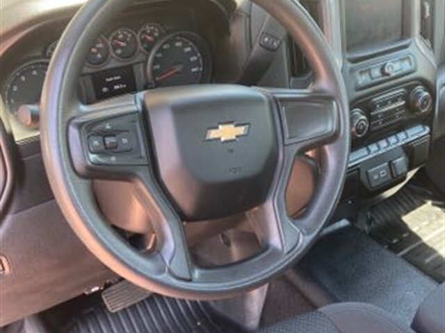 -- INSTALLED FEATURES: Air filtration, Front air conditioning, Front air conditioning zones: single, Airbag deactivation: occupant sensing passenger, Front airbags: dual, Side airbags: front, Side curtain airbags: front, Side-curtain airbag rollover sensor, Antenna type: mast, Auxiliary audio input: Bluetooth / USB / iPod/iPhone, Radio: AM/FM / touch screen display, Radio data system, Speed sensitive volume control, Total speakers: 2, ABS: 4-wheel, Braking assist, Electronic brakeforce distribution, Front brake diameter: 13.6, Front brake type: ventilated disc, Front brake width: 1.18, Power brakes, Rear brake diameter: 14.2, Rear brake type: ventilated disc, Rear brake width: 0.79, Armrests: front center, Floor material: rubber/vinyl, Steering wheel trim: urethane, Assist handle: front, Capless fuel filler system, Cupholders: front, Power outlet(s): 12V front, Power steering, Reading lights: front, Rearview mirror: manual day/night, Retained accessory power, Steering wheel: tilt, Storage: door pockets, Sun visors, Axle ratio: 3.42, Alternator: 170 amps, Auxiliary oil cooler, Battery: heavy duty / maintenance-free, Battery rating: 730 CCA, Battery saver, Active grille shutters, Bumper detail: rear step, Door handle color: black, Exhaust tip color: stainless-steel, Front bumper color: black, Grille color: black, Mirror color: black, Pickup bed light, Pickup bed type: fleetside, Rear bumper color: black, Tailgate: removable, Tailgate protection cap, Window trim: black, Connected in-car apps: Google POIs / Google search, Infotainment: Chevrolet Infotainment System, Infotainment screen size: 7 in., Smartphone integration: Android Auto / Apple CarPlay, Clock, Digital odometer, Driver information system, Engine hour meter, External temperature display, Fuel economy display: MPG / range, Gauge: oil pressure / tachometer, Instrument cluster screen size: 3.5 in., Multi-function display, Trip odometer, Warnings and reminders: coolant temperature warning / lamp failure / low battery / low fuel level / low oil pressure / maintenance due / tire fill alert, Daytime running lights, Headlights: auto delay off / auto on/off / halogen / wiper activated, Side mirror adjustments: manual / manual folding, Camera system: rearview, Child seat anchors, Programmable safety key, Rearview monitor: in dash, Emergency locking retractors: front, Front seatbelts: 3-point, Seatbelt pretensioners: front, Seatbelt warning sensor: front, Driver seat manual adjustments: reclining / 4, Front headrests: adjustable / 2, Front seat type: 40-20-40 split bench, Passenger seat manual adjustments: reclining / 4, Upholstery: vinyl, Anti-theft system: engine immobilizer, Hill holder control, Roll stability control, Stability control, Traction control, Trailer stability control, Front shock type: twin-tube gas, Front spring type: coil, Front stabilizer bar: diameter 33 mm, Front struts, Front suspension classification: independent, Front suspension type: upper and lower control arms, Rear shock type: twin-tube gas, Rear spring type: leaf, Rear suspension classification: solid live axle, Rear suspension type: multi-leaf, Electronic messaging assistance: voice operated / with read function, Phone: voice operated, Wireless data link: Bluetooth, Spare tire mount location: underbody, Spare tire size: full-size, Spare wheel type: steel, Tire Pressure Monitoring System, Tire type: all season, Wheels: painted steel, Cargo tie downs, Tow/Haul mode, Front wipers: variable intermittent, Solar-tinted glass