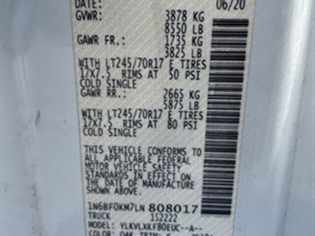 -- INSTALLED FEATURES: Front air conditioning, Front air conditioning zones: single, Airbag deactivation: occupant sensing passenger, Front airbags: dual, Side airbags: front, Side curtain airbags: front, Antenna type: mast, Auxiliary audio input: Bluetooth / USB / iPod/iPhone / jack, Radio: AM/FM, Radio data system, Speed sensitive volume control, Total speakers: 2, ABS: 4-wheel, Braking assist, Electronic brakeforce distribution, Front brake diameter: 14.2, Front brake type: ventilated disc, Front brake width: 1.5, Power brakes, Rear brake diameter: 14.4, Rear brake type: ventilated disc, Rear brake width: 1.2, Armrests: dual front, Floor material: rubber/vinyl, Steering wheel trim: urethane, Assist handle: front / rear, Cargo area light, Cupholders: front, Multi-function remote: keyless entry / panic alarm, One-touch windows: 1, Power outlet(s): 12V front, Power steering: variable/speed-proportional, Power windows: lockout button, Reading lights: front, Steering wheel: tilt, Steering wheel mounted controls: audio / phone, Storage: cargo tie-down anchors and hooks / door pockets / in dash, Sun visors, Axle ratio: 3.36, Alternator: 130 amps, Battery saver, Bumper detail: rear step, Door handle color: black, Front bumper color: black, Grille color: black, Mirror color: black, Rear bumper color: black, Rear trunk/liftgate: barn, Side door type: passenger-side manual sliding, Window trim: black, Infotainment screen size: 7 in., Clock, Digital odometer, External temperature display, Fuel economy display: MPG / range, Gauge: oil pressure / tachometer / transmission temperature, Multi-function display, Trip odometer, Warnings and reminders: low fuel level / maintenance due, Daytime running lights, Headlights: halogen, Side mirror adjustments: manual / manual folding, OEM roof height: standard, Camera system: rearview, Crumple zones: front / rear, Rearview monitor: in dash, Safety brake pedal system, Emergency locking retractors: front, Front seatbelts: 3-point, Seatbelt force limiters: front, Seatbelt pretensioners: front, Seatbelt warning sensor: front, Driver seat manual adjustments: reclining / 4, Front headrests: adjustable / 2, Front seat type: bucket, Passenger seat folding: folds flat, Passenger seat manual adjustments: reclining / 4, Upholstery: cloth, Power door locks: anti-lockout / auto-locking, Stability control, Traction control, Steering ratio: 19, Turns lock-to-lock: 4.6, Front shock type: twin-tube gas, Front spring type: coil, Front stabilizer bar: diameter 35 mm, Front struts, Front suspension classification: independent, Front suspension type: double wishbone, Rear shock type: twin-tube gas, Rear spring type: leaf, Rear stabilizer bar: diameter 18 mm, Rear suspension classification: solid live axle, Rear suspension type: multi-leaf, Electronic messaging assistance: with read function, Phone: hands free, Wireless data link: Bluetooth, Spare tire mount location: underbody, Spare tire size: full-size, Spare wheel type: steel, Tire Pressure Monitoring System, Tire type: all season, Wheels: steel, Front wipers: variable intermittent, Power windows: safety reverse, Solar-tinted glass: front