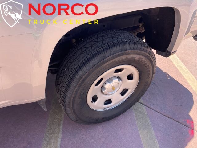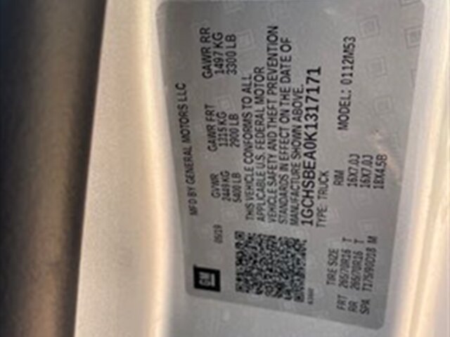 -- INSTALLED FEATURES: Air filtration, Front air conditioning, Front air conditioning zones: single, Airbag deactivation: occupant sensing passenger, Front airbags: dual, Side airbags: front, Side curtain airbags: front / rear, Antenna type: mast, Auxiliary audio input: Bluetooth / USB / iPod/iPhone / jack, Radio: AM/FM / touch screen display, Radio data system, Speed sensitive volume control, Total speakers: 6, ABS: 4-wheel, Braking assist, Electronic brakeforce distribution, Front brake diameter: 12.2, Front brake type: ventilated disc, Front brake width: 1.06, Power brakes, Rear brake diameter: 12.8, Rear brake type: ventilated disc, Rear brake width: 0.71, Floor mat material: carpet, Floor material: carpet, Floor mats: front / rear, Shift knob trim: urethane, Steering wheel trim: urethane, Assist handle: front / rear, Center console: front console with armrest and storage, Cupholders: front / rear, One-touch windows: 1, Power outlet(s): 12V front, Power steering: variable/speed-proportional, Reading lights: front, Rearview mirror: manual day/night, Steering wheel: tilt, Steering wheel mounted controls: phone, Storage: door pockets / in dash / under rear seats, Vanity mirrors: passenger, Axle ratio: 4.10, Battery: maintenance-free, Battery saver, Bumper detail: rear step, Door handle color: black, Front bumper color: body-color, Grille color: black with chrome accents, Mirror color: black, Pickup bed light, Rear bumper color: chrome, Side door type: dual rear-hinged access, Window trim: black, Infotainment: Chevrolet Infotainment System, Infotainment screen size: 7 in., Smartphone integration: Android Auto / Apple CarPlay, Clock, Digital odometer, External temperature display, Fuel economy display: MPG / range, Gauge: oil pressure / tachometer, Instrument cluster screen size: 3.5 in., Multi-function display, Trip odometer, Warnings and reminders: low fuel level / low oil level / maintenance due, Daytime running lights, Headlights: auto delay off / auto on/off / halogen, Side mirror adjustments: manual / manual folding, Camera system: rearview, Check rear seat reminder, Child seat anchors: LATCH system, Programmable safety key, Rearview monitor: in dash, Emergency locking retractors: front, Front seatbelts: 3-point, Rear seatbelts: 3-point, Seatbelt force limiters: front, Seatbelt pretensioners: front, Seatbelt warning sensor: front, Driver seat manual adjustments: reclining, Driver seat power adjustments: height / 4, Front headrests: adjustable / 2, Front seat type: bucket, Passenger seat manual adjustments: reclining / 2, Rear headrests: fixed / 2, Rear seat type: jumpseats, Upholstery: cloth, Anti-theft system: vehicle immobilizer, Power door locks: anti-lockout / auto-locking, Hill holder control, Stability control, Traction control, Trailer stability control, Steering ratio: 16.8, Turns lock-to-lock: 3.3, Front shock type: twin-tube gas, Front spring type: coil, Front stabilizer bar, Front struts, Front suspension classification: independent, Front suspension type: upper and lower control arms, Rear shock type: twin-tube gas, Rear spring type: leaf, Rear suspension classification: solid live axle, Rear suspension type: multi-leaf, Electronic messaging assistance: voice operated / with read function, Phone: voice operated, Wireless data link: Bluetooth, Spare tire mount location: underbody, Spare tire size: temporary, Spare wheel type: aluminum, Tire Pressure Monitoring System, Tire type: all season, Wheels: steel, Front wipers: variable intermittent, Power windows: safety reverse