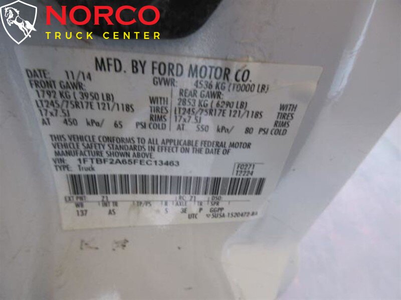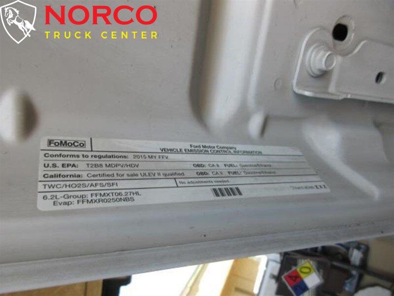 <ul><li><P style= "BORDER-TOP-COLOR: ; BORDER-LEFT-COLOR: ; BORDER-BOTTOM-COLOR: ; BORDER-RIGHT-COLOR: " >YOU ARE LOOKING AT A 2015 FORD F-250 WITH A 2 DOOR CAB; REGULAR BODY. THIS VEHICLE HAS AN AUTMATIC TRANSMISSION, V8, 6.2L; FFV ENGINE WITH 75085 MILES. THE DRIVETRAIN IS: RWD. PLEASE CALL NORCO TRUCK CENTER INC FOR MORE INFORMATION AT (951) 372-0354 OR COME SEE US AT ~ 2075 HAMNER AVE. NORCO, CA. 92860 ~ </P > <P style= "BORDER-TOP-COLOR: ; BORDER-LEFT-COLOR: ; BORDER-BOTTOM-COLOR: ; BORDER-RIGHT-COLOR: " > </P ></li></ul> -- INSTALLED FEATURES: Front air conditioning, Front air conditioning zones: single, Airbag deactivation: passenger switch, Front airbags: dual, Side airbags: front, Side curtain airbags: front, Antenna type: mast, Radio: AM/FM, Total speakers: 2, ABS: 4-wheel, Braking assist, Electronic brakeforce distribution, Front brake diameter: 14.29, Front brake type: ventilated disc, Power brakes, Rear brake diameter: 14.3, Rear brake type: ventilated disc, Armrests: front center, Floor material: rubber/vinyl, Assist handle: front, Cupholders: front, Power outlet(s): two 12V front, Power steering, Reading lights: front, Rearview mirror: manual day/night, Steering wheel: tilt and telescopic, Storage: cargo tie-down anchors and hooks / in dash, Vanity mirrors: passenger, Axle ratio: 3.73, Alternator: 157 amps, Battery rating: 650 CCA, Door handle color: black, Front bumper color: black, Grille color: black, Mirror color: black, Pickup bed light, Rear bumper color: black, Tailgate: removable, Clock, Fuel economy display: MPG / range, Gauge: tachometer, Instrument cluster screen size: 2.3 in., Multi-function display, Powertrain hour meter, Trip odometer, Warnings and reminders: low fuel level / low oil level, Headlights: halogen, Side mirror adjustments: manual / manual folding / manual telescoping, Towing mirrors, Child seat anchors: LATCH system, Impact sensor: post-collision safety system, Programmable safety key, Front seatbelts: 3-point, Seatbelt pretensioners: front, Seatbelt warning sensor: front, Driver seat manual adjustments: lumbar / 6, Front headrests: integrated / 2, Front seat type: 40-20-40 split bench, Passenger seat manual adjustments: 4, Upholstery: vinyl, Anti-theft system: vehicle immobilizer, Hill holder control, Roll stability control, Stability control, Traction control, Trailer stability control, Steering ratio: 20.49, Front shock type: gas, Front spring type: coil, Front stabilizer bar, Front suspension classification: independent, Front suspension type: twin I-beam, Rear shock type: gas, Rear spring type: leaf, Rear suspension classification: solid live axle, Rear suspension type: multi-leaf, Spare tire mount location: underbody, Spare tire size: full-size matching, Spare wheel type: steel, Tire Pressure Monitoring System, Tire type: all season, Wheel covers: partial, Wheels: steel, Tow hooks: front, Trailer hitch, Trailer wiring: 7-pin, Front wipers: intermittent