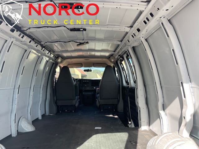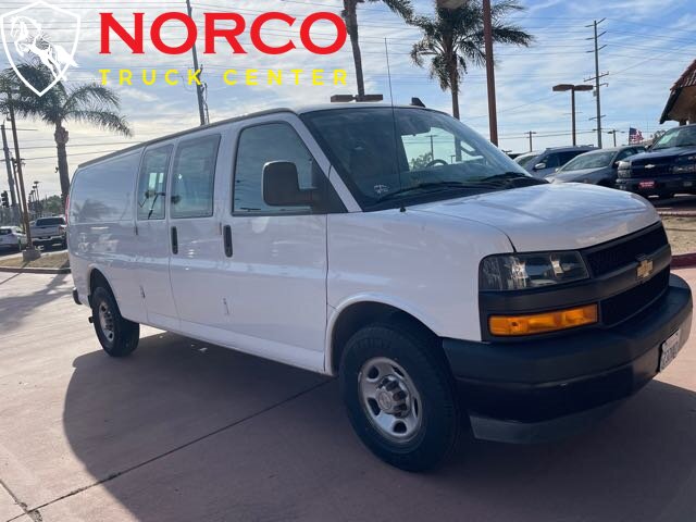 INSTALLED FEATURES: Front air conditioning, Front air conditioning zones: single, Airbag deactivation: passenger switch, Front airbags: dual, Side airbags: front, Side curtain airbags: front, Side-curtain airbag rollover sensor, Antenna type: mast, Auxiliary audio input: jack, Radio: AM/FM, Total speakers: 2, ABS: 4-wheel, Electronic brakeforce distribution, Front brake diameter: 12.8, Front brake type: ventilated disc, Front brake width: 1.5, Power brakes, Rear brake diameter: 13.0, Rear brake type: ventilated disc, Rear brake width: 1.14, Armrests: front center, Floor material: rubber/vinyl, Steering wheel trim: urethane, Assist handle: front, Cargo area light: 3, Cupholders: front / 3, Power outlet(s): 115V front / 12V front, Power steering, Reading lights: front, Retained accessory power, Storage: cargo tie-down anchors and hooks / door pockets / in dash, Sun visors, Rear door type: barn, Side door type: passenger-side hinged swing-out, Axle ratio: 3.42, Alternator: 105 amps, Auxiliary oil cooler, Battery: maintenance-free, Battery rating: 600 CCA, Battery saver, Bumper detail: rear step, Door handle color: black, Front bumper color: black, Grille color: black, License plate bracket: front, Mirror color: black, Rear bumper color: black, Window trim: black, Clock, Digital odometer, Engine hour meter, Fuel economy display: MPG / range, Gauge: oil pressure / tachometer, Multi-function display, Trip odometer, Warnings and reminders: low fuel level / maintenance due / tire fill alert, Daytime running lights, Headlights: auto on/off / halogen, Side mirror adjustments: manual / manual folding, OEM roof height: undefined, Body side reinforcements: side impact door beams, Camera system: rearview, Child seat anchors, Rearview monitor: in mirror, Front seatbelts: 3-point, Seatbelt pretensioners: front, Driver seat manual adjustments: reclining / 4, Front headrests: integrated / 2, Front seat type: bucket, Passenger seat manual adjustments: reclining / 4, Upholstery: vinyl, Anti-theft system: alarm / audio security system / engine immobilizer, Power door locks: anti-lockout, Hill holder control, Stability control, Traction control, Steering ratio: 17.2, Turns lock-to-lock: 3.0, Front shock type: gas, Front spring type: coil, Front stabilizer bar: diameter 35 mm, Front suspension classification: independent, Front suspension type: short and long arm, Rear shock type: gas, Rear spring type: leaf, Rear suspension classification: solid live axle, Rear suspension type: multi-leaf, Driver assistance app: roadside assistance, Satellite communications: OnStar / voice guided directions, Smart device app function: maintenance status, Wifi: hotspot, Spare tire mount location: underbody, Spare tire size: full-size matching, Spare wheel type: steel, Tire Pressure Monitoring System, Tire type: all season, Wheel covers: partial, Wheels: steel, Auxiliary transmission fluid cooler, Tow/Haul mode, Front wipers: intermittent, Power windows, Solar-tinted glass: front / rear, Window defogger: side