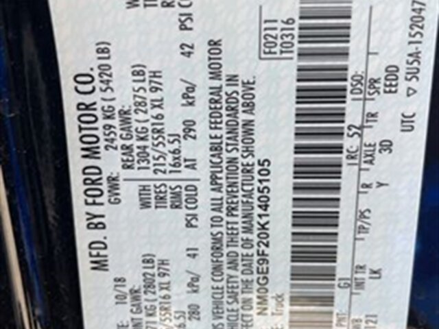 -- INSTALLED FEATURES: Air filtration, Front air conditioning: automatic climate control, Front air conditioning zones: dual, Rear air conditioning: independently controlled, Rear air conditioning zones: single, Airbag deactivation: occupant sensing passenger, Front airbags: dual, Side airbags: front, Side curtain airbags: front / rear / third row, Antenna type: diversity / mast, Auxiliary audio input: Bluetooth / USB / iPod/iPhone, Radio: AM/FM / touch screen display / voice operated, Satellite radio: SiriusXM, Speed sensitive volume control, Total speakers: 6, ABS: 4-wheel, Braking assist, Electronic brakeforce distribution, Emergency braking preparation, Front brake diameter: 12.6, Front brake type: ventilated disc, Power brakes, Rear brake diameter: 11.0, Rear brake type: disc, Armrests: rear outboard seats, Door trim: cloth, Floor mat material: carpet, Floor material: carpet, Floor mats: front / rear, Interior accents: chrome, Shift knob trim: urethane, Steering wheel trim: urethane, Assist handle: front / rear, Capless fuel filler system, Center console: front console with armrest and storage, Conversation mirror, Cruise control, Cupholders: front / rear / third row / 6, Multi-function remote: keyless entry / panic alarm / trunk release, One-touch windows: 4, Overhead console: front, Power outlet(s): 12V cargo area / 12V front / 12V rear, Power steering, Power windows: lockout button, Reading lights: front / rear, Rearview mirror: manual day/night, Steering wheel: tilt and telescopic, Steering wheel mounted controls: cruise control / voice control, Storage: accessory hook / cargo net / door pockets / front seatback / sunglasses holder, Vanity mirrors: dual, Wireless charging station: front, Axle ratio: 3.80, Drive mode selector, Alternator: 220 amps, Auto start/stop, Battery: maintenance-free, Battery rating: 800 CCA, Battery saver, Body side moldings: body-color, Door handle color: body-color, Front bumper color: body-color, Grille color: black / chrome surround, Headlight bezel color: black, Mirror color: black, Rear bumper color: body-color, Rear trunk/liftgate: liftgate, Side door type: dual manual sliding, Window trim: black, Connected in-car apps: Google POIs / Google search / SYNC Destinations-travel / app marketplace integration, Infotainment: SYNC, Infotainment screen size: 6.5 in., Smartphone integration: Android Auto / Apple CarPlay, Clock, Compass, Digital odometer, External temperature display, Fuel economy display: MPG / range, Gauge: tachometer, Instrument cluster screen size: 4.2 in., Multi-function display, Trip odometer, Warnings and reminders: low fuel level / maintenance due, Daytime running lights, Front fog lights, Headlights: auto on/off / halogen / wiper activated, Side mirror adjustments: manual folding / power, Side mirrors: heated, OEM roof height: undefined, Automatic emergency braking: front, Camera system: rearview, Child safety door locks, Child seat anchors: LATCH system, Parking sensors: rear, Pre-collision warning system: audible warning / pedestrian detection / visual warning, Programmable safety key, Rearview monitor: in dash, Emergency locking retractors: front / rear, Front seatbelts: 3-point, Rear seatbelts: 3-point, Seatbelt pretensioners: front, Seatbelt warning sensor: front, Third row seatbelts: 3-point, Driver seat manual adjustments: lumbar, Driver seat power adjustments: height / reclining / 6, Front headrests: adjustable / 2, Front seat type: bucket, Passenger seat folding: folds flat, Passenger seat manual adjustments: lumbar / reclining / 4, Rear headrests: adjustable / 2, Rear seat folding: flat, Rear seat type: bucket, Third row headrests: adjustable / 2, Third row seat folding: flat / split, Third row seat type: 50-50 split bench, Upholstery: cloth, Anti-theft system: vehicle immobilizer, Power door locks: auto-locking, Crosswind stabilization, Hill holder control, Roll stability control, Stability control, Traction control, Front shock type: gas, Front spring type: coil, Front stabilizer bar, Front struts: MacPherson, Front suspension classification: independent, Front suspension type: lower control arms, Rear shock type: gas, Rear spring type: coil, Rear suspension classification: semi-independent, Rear suspension type: torsion beam, Electronic messaging assistance: with read function, Phone: voice operated, Smart device app compatibility: FordPass Connect, Smart device app function: engine start / lock operation / maintenance status / vehicle location, Wi-Fi: hotspot, Wireless data link: Bluetooth, Spare tire mount location: underbody, Spare tire size: full-size, Spare wheel type: steel, Tire Pressure Monitoring System, Tire type: all season, Wheel covers: full, Wheels: painted steel, Front wipers: rain sensing / variable intermittent, Laminated glass: acoustic, Liftgate window: fixed, Power windows: safety reverse, Rear privacy glass, Rear wiper: intermittent / with washer, Solar-tinted glass, Window defogger: rear