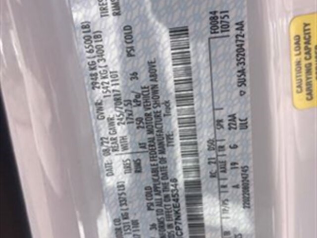 -- INSTALLED FEATURES: Air filtration, Front air conditioning, Front air conditioning zones: single, Airbag deactivation: occupant sensing passenger, Front airbags: dual, Side airbags: front, Side curtain airbags: front / rear, Antenna type: mast, Auxiliary audio input: Bluetooth / USB / iPod/iPhone / jack, Radio: AM/FM / touch screen display, Radio data system, Speed sensitive volume control, Total speakers: 6, Watts: 80, ABS: 4-wheel, Braking assist, Cornering brake control, Electronic brakeforce distribution, Electronic parking brake: auto off, Emergency braking preparation, Front brake diameter: 13.8, Front brake type: ventilated disc, Front brake width: 1.34, Power brakes, Rear brake diameter: 13.2, Rear brake type: ventilated disc, Rear brake width: 0.79, Armrests: front center, Door sill trim: scuff plate, Floor material: rubber/vinyl, Steering wheel trim: urethane, Assist handle: front, Capless fuel filler system, Cupholders: front, Power outlet(s): 12V front / 12V rear / USB front / USB rear / USB-C front / USB-C rear, Power steering, Reading lights: front, Rearview mirror: manual day/night, Steering wheel: tilt and telescopic, Steering wheel mounted controls: audio / multi-function / phone, Storage: accessory hook / door pockets / front seatback / under rear seats, Vanity mirrors: passenger, Axle ratio: 3.55, Drive mode selector, Alternator: 200 amps, Auto start/stop, Battery: maintenance-free, Battery saver, Active grille shutters, Door handle color: black, Front bumper color: black, Grille color: black / black surround, Mirror color: black, Pickup bed light, Rear bumper color: black, Side door type: dual rear-hinged access, Tailgate: lift assist / removable, Window trim: black, Connected in-car apps: Google POIs / Google search / app marketplace integration, Infotainment: SYNC, Infotainment screen size: 8 in., Smartphone integration: wireless Android Auto / wireless Apple CarPlay, Clock, Compass, Digital odometer, External temperature display, Fuel economy display: MPG / range, Gauge: oil pressure / tachometer / transmission temperature, Instrument cluster screen size: 4 in., Multi-function display, Powertrain hour meter, Trip odometer, Warnings and reminders: low fuel level / low oil level / maintenance due, Daytime running lights, Headlights: auto delay off / auto high beam dimmer / auto on/off / halogen / wiper activated, Side mirror adjustments: manual / manual folding, Automatic emergency braking: front / front pedestrian, Automatic hazard warning lights, Camera system: rearview, Child seat anchors: LATCH system, Crumple zones: front, Impact sensor: alert system / door unlock / post-collision safety system, Lane deviation sensors, Lane keeping assist, Pre-collision warning system: audible warning / pedestrian detection / visual warning, Rearview monitor: in dash, Emergency locking retractors: front, Front seatbelts: 3-point, Rear seatbelts: 3-point, Seatbelt force limiters: front, Seatbelt pretensioners: front, Seatbelt warning sensor: front, Driver seat manual adjustments: reclining / 4, Front headrests: adjustable / 3, Front seat type: 40-20-40 split bench, Passenger seat manual adjustments: reclining / 4, Rear headrests: adjustable / 3, Rear seat folding: folds up / split, Rear seat type: 60-40 split bench, Upholstery: cloth, Anti-theft system: vehicle immobilizer, Hill holder control, Roll stability control, Stability control, Traction control, Trailer stability control, Steering ratio: 17.4, Front shock type: gas, Front spring type: coil, Front stabilizer bar, Front struts, Front suspension classification: independent, Front suspension type: double wishbone, Rear shock type: gas, Rear spring type: leaf, Rear suspension classification: solid live axle, Rear suspension type: multi-leaf, Electronic messaging assistance: with read function, Smart device app compatibility: FordPass Connect, Smart device app function: engine start / horn/light operation / lock operation / maintenance status / vehicle location, Wi-Fi: hotspot, Wireless data link: Bluetooth, Spare tire mount location: underbody, Spare tire size: full-size, Spare wheel type: steel, Tire Pressure Monitoring System, Tire type: all season, Wheel locks: spare only, Wheels: painted steel, Pickup bed cargo management: tie-down anchors, Tow/Haul mode, Trailer hitch: bumper hitch, Trailer wiring: 4-pin, Front wipers: variable intermittent, Solar-tinted glass: rear