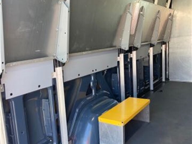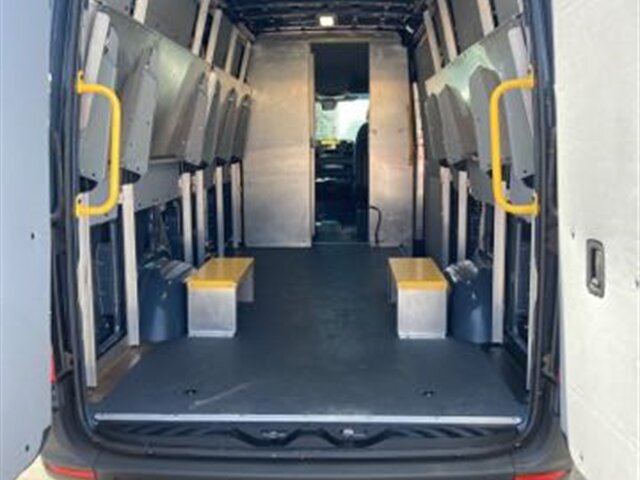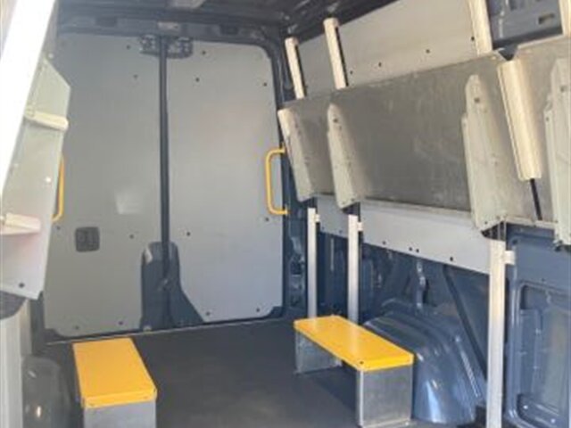 INSTALLED FEATURES: Air filtration, Front air conditioning, Front air conditioning zones: single, Rear vents: second row, Airbag deactivation: occupant sensing passenger, Front airbags: dual, Side airbags: front, Side curtain airbags: front, Side-curtain airbag rollover sensor, Antenna type: mast, Auxiliary audio input: Bluetooth / USB, Radio: AM/FM, Radio data system, Total speakers: 5, Watts: 100, ABS: 4-wheel, Brake drying, Braking assist, Electronic brakeforce distribution, Emergency braking preparation, Front brake diameter: 11.8, Front brake type: ventilated disc, Front brake width: 1.1, Power brakes, Rear brake diameter: 11.9, Rear brake type: ventilated disc, Rear brake width: 1.1, Armrests: dual front / rear outboard seats, Floor material: rubber/vinyl, Steering wheel trim: urethane, Assist handle: front / rear, Cargo area light, Cupholders: front / rear, Multi-function remote: keyless entry, One-touch windows: 1, Overhead console: front, Power outlet(s): 12V front, Power steering: variable/speed-proportional, Push-button start, Reading lights: front, Rearview mirror: manual day/night, Retained accessory power, Steering wheel: tilt and telescopic, Steering wheel mounted controls: audio / paddle shifter, Storage: cargo net / cargo tie-down anchors and hooks / door pockets / lockbox / under front seats, Sun visors, Rear door type: barn, Side door type: passenger-side manual sliding, Axle ratio: 3.92, Alternator: 220 amps, Battery: AGM / maintenance-free, Battery rating: 720 CCA, Body side moldings: black, Door handle color: black, Front bumper color: black, Grille color: black, Mirror color: black, Mudguards: front / rear, Rear bumper color: black, Window trim: black, Infotainment screen size: 3 in., Clock, Digital odometer, External temperature display, Fuel economy display: MPG / range, Gauge: tachometer, Instrument cluster screen size: 3.5 in., Multi-function display, Trip odometer, Warnings and reminders: low fuel level / maintenance due / tire fill alert, Daytime running lights, Headlights: auto delay off / auto on/off / halogen, Side mirror adjustments: manual folding / power, OEM roof height: high, Body side reinforcements, Camera system: rearview, Child safety door locks, Child seat anchors: LATCH system, Crumple zones: front / rear, Energy absorbing steering column, Impact sensor: post-collision safety system, Rearview monitor: in mirror, Emergency locking retractors: front, Front seatbelts: 3-point, Rear seatbelts: 3-point, Seatbelt force limiters: front, Seatbelt pretensioners: front, Seatbelt warning sensor: front, Driver seat manual adjustments: height / reclining / 4, Front headrests: adjustable / 2, Front seat type: bucket, Passenger seat manual adjustments: height / reclining / 4, Rear headrests: adjustable / 3, Rear seat manual adjustments: reclining, Rear seat type: bench, Upholstery: cloth, 2-stage unlocking doors, Anti-theft system: engine immobilizer, Power door locks: auto-locking, Crosswind stabilization, Hill holder control, Roll stability control, Stability control, Traction control, Front shock type: gas, Front spring type: transverse leaf, Front stabilizer bar, Front suspension classification: independent, Front suspension type: lower control arms, Rear shock type: gas, Rear spring type: leaf, Rear stabilizer bar, Rear suspension classification: solid live axle, Rear suspension type: multi-leaf, Phone: hands free, Wifi: connection only, Wireless data link: Bluetooth, Spare tire mount location: underbody, Spare tire size: full-size, Spare wheel type: steel, Tire Pressure Monitoring System, Tire type: all season, Wheel covers: partial, Wheels: steel, Trailer wiring: 4-pin / 7-pin, Front wipers: variable intermittent, Laminated glass, Power windows: front, Rear privacy glass, Solar-tinted glass: front, Window defogger: rear