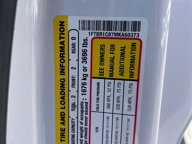 -- INSTALLED FEATURES: Front air conditioning, Front air conditioning zones: single, Airbag deactivation: passenger switch, Front airbags: dual, Side airbags: front, Side curtain airbags: front, Antenna type: mast, Auxiliary audio input: Bluetooth / USB, Radio: AM/FM, Total speakers: 4, ABS: 4-wheel, Braking assist, Cornering brake control, Electronic brakeforce distribution, Electronic parking brake: auto off, Emergency braking preparation, Front brake diameter: 12.1, Front brake type: ventilated disc, Power brakes, Rear brake diameter: 12.1, Rear brake type: ventilated disc, Armrests: dual front, Floor material: rubber/vinyl, Shift knob trim: urethane, Steering wheel trim: urethane, Assist handle: front / rear, Capless fuel filler system, Cargo area light, Center console: front console with storage, Cupholders: front, Multi-function remote: keyless entry / panic alarm / trunk release, One-touch windows: 1, Power outlet(s): 12V front / USB front, Power steering: variable/speed-proportional, Reading lights: front, Steering wheel: tilt and telescopic, Steering wheel mounted controls: audio / multi-function / phone, Storage: door pockets, Sun visors, Axle ratio: 3.73, Alternator: 250 amps, Battery: maintenance-free, Battery rating: 610 CCA, Body side moldings: black, Door handle color: black, Front bumper color: black, Grille color: black / black surround, Mirror color: black, Rear bumper color: black, Rear trunk/liftgate: barn, Side door type: passenger-side manual sliding, Window trim: black, Infotainment screen size: 4 in., Clock, Digital odometer, Gauge: tachometer, Trip odometer, Warnings and reminders: coolant temperature warning / low fuel level / low oil pressure, Headlights: auto delay off / auto high beam dimmer / auto on/off / halogen, Side mirror adjustments: manual folding / power, OEM roof height: medium, Automatic emergency braking: front / front pedestrian, Camera system: rearview, Driver attention alert system, Impact sensor: door unlock / post-collision safety system, Lane deviation sensors, Pre-collision warning system: audible warning / pedestrian detection / visual warning, Rearview monitor: in dash, Front seatbelts: 3-point, Seatbelt warning sensor: front, Driver seat manual adjustments: reclining / 2, Front headrests: adjustable / 2, Front seat type: bucket, Passenger seat manual adjustments: reclining / 2, Upholstery: vinyl, Anti-theft system: vehicle immobilizer, Power door locks: auto-locking, Crosswind stabilization, Hill holder control, Roll stability control, Stability control, Traction control, Trailer stability control, Front shock type: gas, Front spring type: coil, Front stabilizer bar, Front struts: MacPherson, Front suspension classification: independent, Front suspension type: lower control arms, Rear shock type: gas, Rear spring type: leaf, Rear suspension classification: solid live axle, Rear suspension type: multi-leaf, Phone: hands free, Smart device app compatibility: FordPass Connect, Smart device app function: engine start / lock operation / maintenance status / vehicle location, Wi-Fi: hotspot, Wireless data link: Bluetooth, Spare tire mount location: underbody, Spare tire size: full-size, Spare wheel type: steel, Tire Pressure Monitoring System, Tire type: all season, Wheel covers: partial, Wheels: painted steel, Auxiliary transmission fluid cooler, Front wipers: rain sensing / variable intermittent, Power windows: safety reverse, Solar-tinted glass