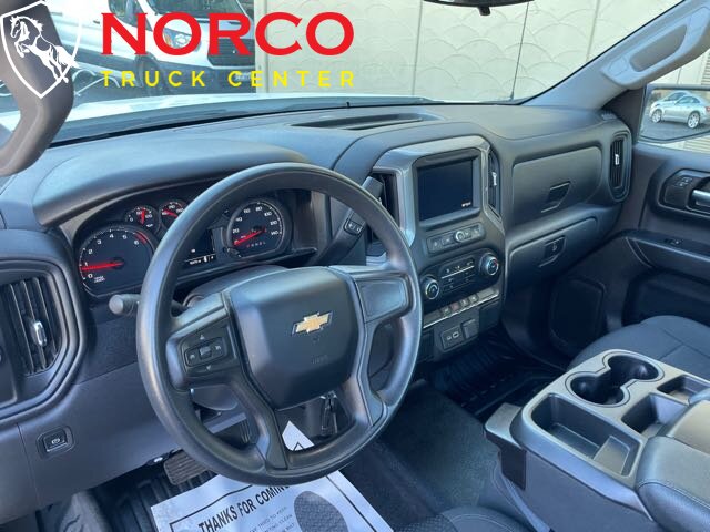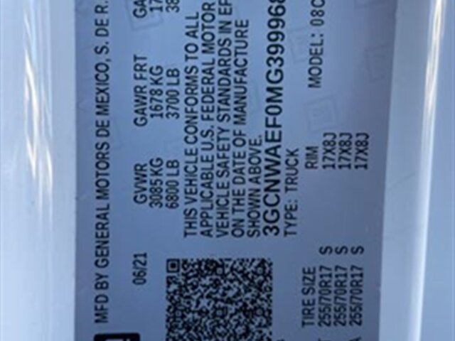 -- INSTALLED FEATURES: Air filtration, Front air conditioning, Front air conditioning zones: single, Airbag deactivation: occupant sensing passenger, Front airbags: dual, Side airbags: front, Side curtain airbags: front, Antenna type: mast, Auxiliary audio input: Bluetooth / USB / iPod/iPhone, Radio: AM/FM / touch screen display, Radio data system, Speed sensitive volume control, Total speakers: 2, ABS: 4-wheel, Braking assist, Electronic brakeforce distribution, Front brake diameter: 13.6, Front brake type: ventilated disc, Front brake width: 1.18, Power brakes, Rear brake diameter: 14.2, Rear brake type: ventilated disc, Rear brake width: 0.79, Armrests: front center, Floor material: rubber/vinyl, Steering wheel trim: urethane, Assist handle: front, Capless fuel filler system, Cupholders: front, Power outlet(s): 12V front / USB front, Power steering, Reading lights: front, Rearview mirror: manual day/night, Steering wheel: tilt, Storage: door pockets, Sun visors, Axle ratio: 3.42, Alternator: 170 amps, Auxiliary oil cooler, Battery: heavy duty / maintenance-free, Battery rating: 730 CCA, Battery saver, Active grille shutters, Bumper detail: rear step, Door handle color: black, Exhaust tip color: stainless steel, Front bumper color: black, Grille color: black, Mirror color: black, Pickup bed light, Rear bumper color: black, Tailgate: removable, Window trim: black, Connected in-car apps: Google POIs / Google search, Infotainment: Chevrolet Infotainment System, Infotainment screen size: 7 in., Smartphone integration: Android Auto / Apple CarPlay, Clock, Digital odometer, Engine hour meter, External temperature display, Fuel economy display: MPG / range, Gauge: oil pressure / tachometer, Instrument cluster screen size: 3.5 in., Multi-function display, Trip odometer, Warnings and reminders: coolant temperature warning / lamp failure / low battery / low fuel level / low oil pressure / maintenance due, Daytime running lights, Headlights: auto delay off / auto on/off / halogen / wiper activated, Side mirror adjustments: manual / manual folding, Camera system: rearview, Child seat anchors, Programmable safety key, Rearview monitor: in dash, Emergency locking retractors: front, Front seatbelts: 3-point, Seatbelt pretensioners: front, Seatbelt warning sensor: front, Driver seat manual adjustments: reclining / 4, Front headrests: adjustable / 2, Front seat type: 40-20-40 split bench, Passenger seat manual adjustments: reclining / 4, Upholstery: vinyl, Anti-theft system: vehicle immobilizer, Hill holder control, Roll stability control, Stability control, Traction control, Trailer stability control, Front shock type: twin-tube gas, Front spring type: coil, Front stabilizer bar: diameter 33 mm, Front struts, Front suspension classification: independent, Front suspension type: upper and lower control arms, Rear shock type: twin-tube gas, Rear spring type: leaf, Rear suspension classification: solid live axle, Rear suspension type: multi-leaf, Electronic messaging assistance: voice operated / with read function, Phone: voice operated, Wireless data link: Bluetooth, Spare tire mount location: underbody, Spare tire size: full-size, Spare wheel type: steel, Tire Pressure Monitoring System, Tire type: all season, Wheels: painted steel, Pickup bed cargo management: tie-down anchors, Tow/Haul mode, Front wipers: variable intermittent, Solar-tinted glass