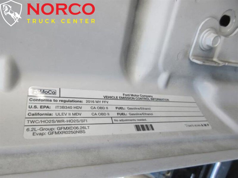 YOU ARE LOOKING AT A 2016 FORD F250 WITH A REGULAR CAB BODY. THIS VEHICLE HAS AN AT TRANSMISSION, V8, 6.2L; FFV ENGINE WITH 77717 MILES. THE DRIVETRAIN IS: RWD. PLEASE CALL NORCO TRUCK CENTER INC FOR MORE INFORMATION AT (951) 372-0354 OR COME SEE US AT ~ 2075 HAMNER AVE. NORCO, CA. 92860 ~ -- INSTALLED FEATURES: Front air conditioning, Front air conditioning zones: single, Airbag deactivation: passenger switch, Front airbags: dual, Side airbags: front, Side curtain airbags: front, Side-curtain airbag rollover sensor, Antenna type: mast, Radio: AM/FM, Total speakers: 2, ABS: 4-wheel, Braking assist, Electronic brakeforce distribution, Front brake diameter: 14.29, Front brake type: ventilated disc, Power brakes, Rear brake diameter: 14.3, Rear brake type: ventilated disc, Armrests: front center, Floor material: rubber/vinyl, Assist handle: front, Cupholders: front, Power outlet(s): two 12V front, Power steering, Reading lights: front, Rearview mirror: manual day/night, Steering wheel: tilt and telescopic, Storage: cargo tie-down anchors and hooks / in dash, Vanity mirrors: passenger, Axle ratio: 3.73, Alternator: 157 amps, Battery rating: 650 CCA, Door handle color: black, Front bumper color: black, Grille color: black, Mirror color: black, Pickup bed light, Pickup bed type: fleetside, Rear bumper color: black, Tailgate: removable, Window trim: black, Clock, Digital odometer, Engine hour meter, Fuel economy display: MPG / range, Gauge: tachometer, Instrument cluster screen size: 2.3 in., Multi-function display, Trip odometer, Warnings and reminders: low fuel level / low oil level / tire fill alert, Headlights: halogen, Taillights: rear center, Side mirror adjustments: manual / manual folding / manual telescoping, Side mirror type: towing, Body side reinforcements: side impact door beams, Child seat anchors: LATCH system, Impact sensor: alert system / door unlock / post-collision safety system, Programmable safety key, Front seatbelts: 3-point, Seatbelt pretensioners: front, Seatbelt warning sensor: front, Driver seat manual adjustments: lumbar / reclining / 6, Front headrests: adjustable / 2, Front seat type: 40-20-40 split bench, Passenger seat manual adjustments: reclining / 4, Upholstery: vinyl, Anti-theft system: engine immobilizer, Hill holder control, Roll stability control, Stability control, Traction control, Trailer stability control, Steering ratio: 20.49, Front shock type: gas, Front spring type: coil, Front stabilizer bar, Front suspension classification: independent, Front suspension type: twin I-beam, Rear shock type: gas, Rear spring type: leaf, Rear suspension classification: solid live axle, Rear suspension type: multi-leaf, Spare tire mount location: underbody, Spare tire size: full-size, Spare wheel type: steel, Tire Pressure Monitoring System, Tire type: all season, Wheel covers: partial, Wheels: steel, Tow hooks: front, Trailer hitch, Trailer wiring: 7-pin, Front wipers: intermittent