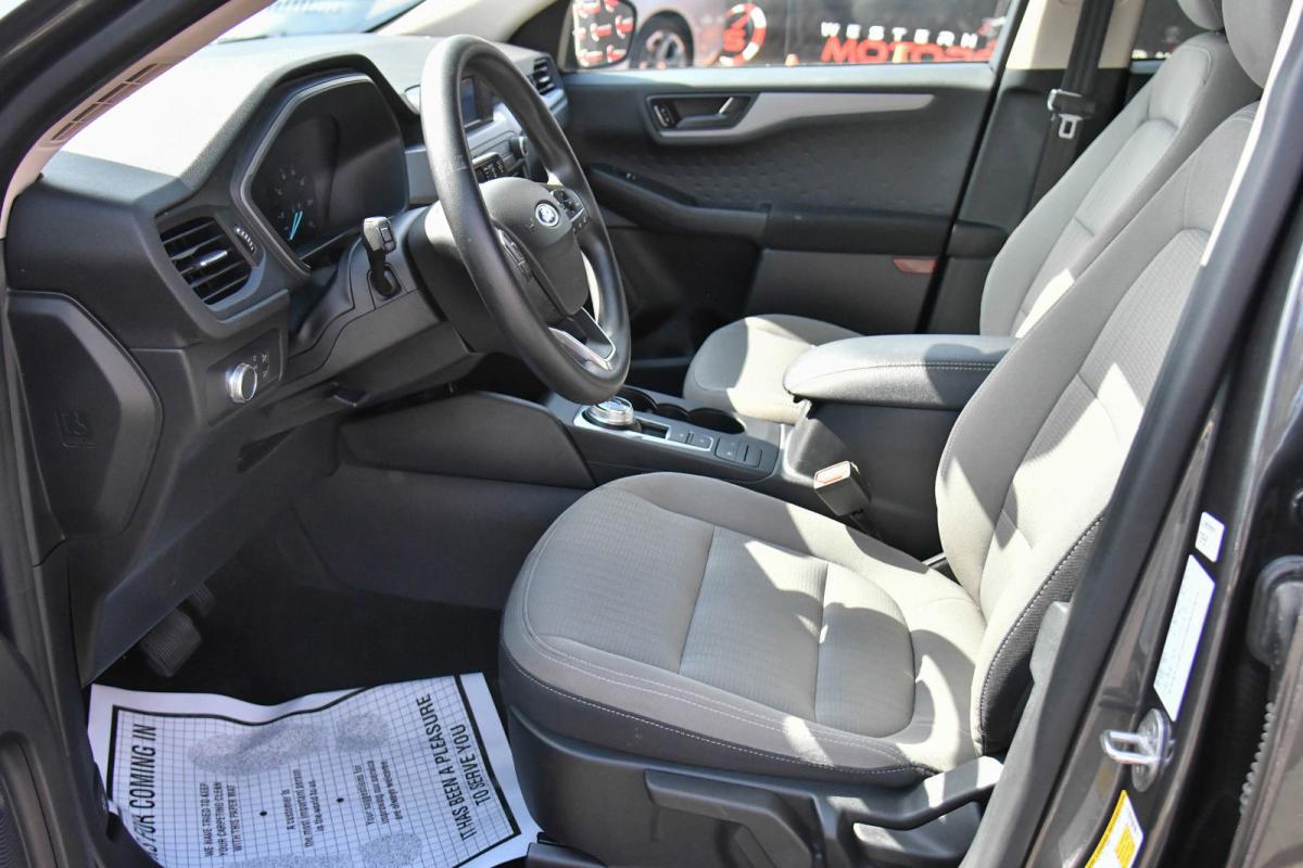 Boasts 33 Highway MPG and 27 City MPG! This Ford Escape delivers a Intercooled Turbo Premium Unleaded I-3 1.5 L/91 engine powering this Automatic transmission. ENGINE: 1.5L ECOBOOST -inc: auto start-stop technology (STD), Wheels: 17 Steel w/Sparkle Silver-Painted Covers, Trip Computer.*This Ford Escape Comes Equipped with These Options *Transmission: 8-Speed Automatic, Transmission w/Driver Selectable Mode and Oil Cooler, Tires: 225/65R17 AS BSW -inc: mini spare, Tire Specific Low Tire Pressure Warning, Tailgate/Rear Door Lock Included w/Power Door Locks, SYNC Communications & Entertainment System -inc: enhanced voice recognition communication, 911 Assist, 4.2 LCD screen in center stack, AppLink and smart charging USB port, Strut Front Suspension w/Coil Springs, Speed Sensitive Variable Intermittent Wipers, Spare Tire Mounted Inside Under Cargo, Side Impact Beams.
