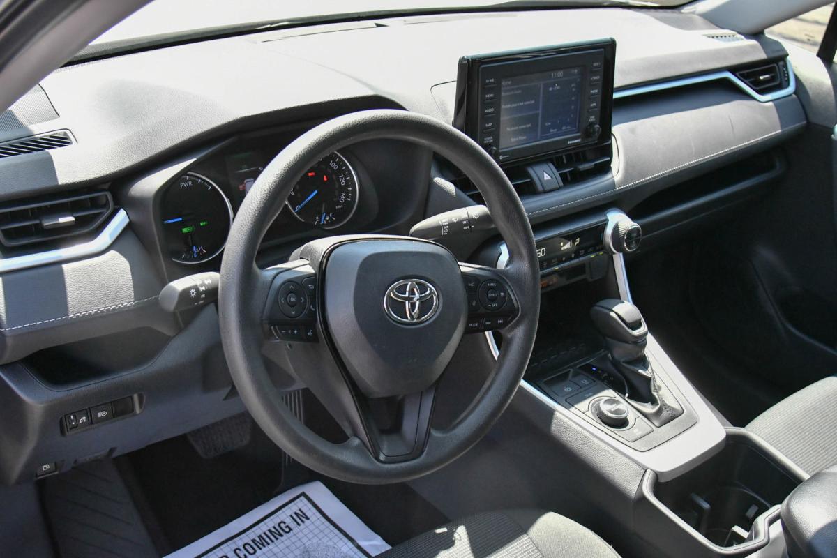 Boasts 38 Highway MPG and 41 City MPG! This Toyota RAV4 boasts a Gas/Electric I-4 2.5 L/152 engine powering this Variable transmission. Wheels: 17 x 7.0J Silver Aluminum Alloy, Urethane Gear Shifter Material, Trip Computer.*This Toyota RAV4 Features the Following Options *Transmission: ECVT (Continuously Variable), Transmission w/Driver Selectable Mode, Sequential Shift Control and Oil Cooler, Towing Equipment -inc: Trailer Sway Control, Tires: 225/65R17 AS, Tailgate/Rear Door Lock Included w/Power Door Locks, Strut Front Suspension w/Coil Springs, Steel Spare Wheel, Side Impact Beams, Seats w/Cloth Back Material, Safety Connect with 1-year trial Tracker System.