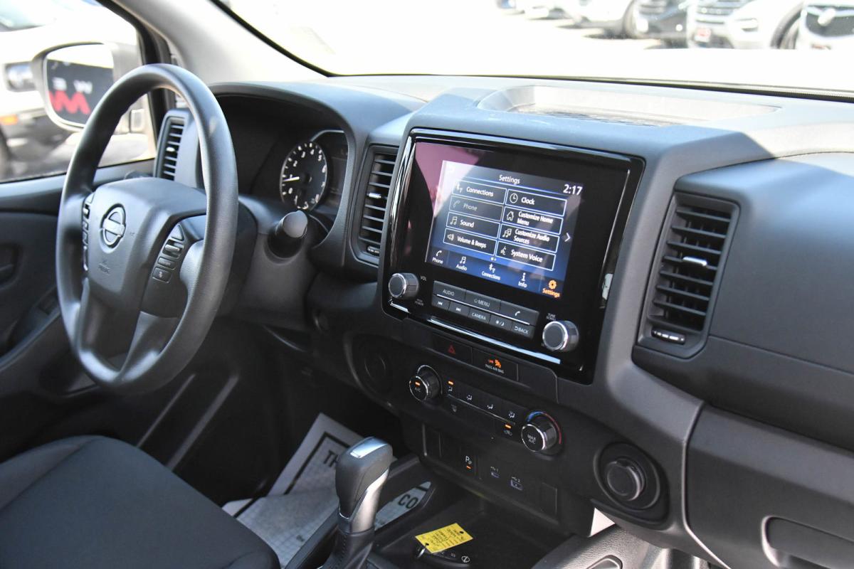 This Nissan Frontier has a strong Regular Unleaded V-6 3.8 L/231 engine powering this Automatic transmission. GLACIER WHITE, CHARCOAL, CLOTH SEAT TRIM, [V01] TECHNOLOGY PACKAGE -inc: Rear Sonar System, Rear Automatic Braking (RAB), High Beam Assist (HBA), Blind Spot Warning (BSW), Rear Cross Traffic Alert (RCTA), Intelligent Cruise Control (ICC), Lane Departure Warning (LDW).*This Nissan Frontier Comes Equipped with These Options *[B92] SPLASH GUARDS, Wheels: 16 Styled Steel, Variable Intermittent Wipers, Urethane Gear Shifter Material, Trip Computer, Transmission: 9-Speed Automatic, Transmission w/Oil Cooler, Towing Equipment -inc: Trailer Sway Control, Tires: P265/70R16 All Season, Tailgate Rear Cargo Access.