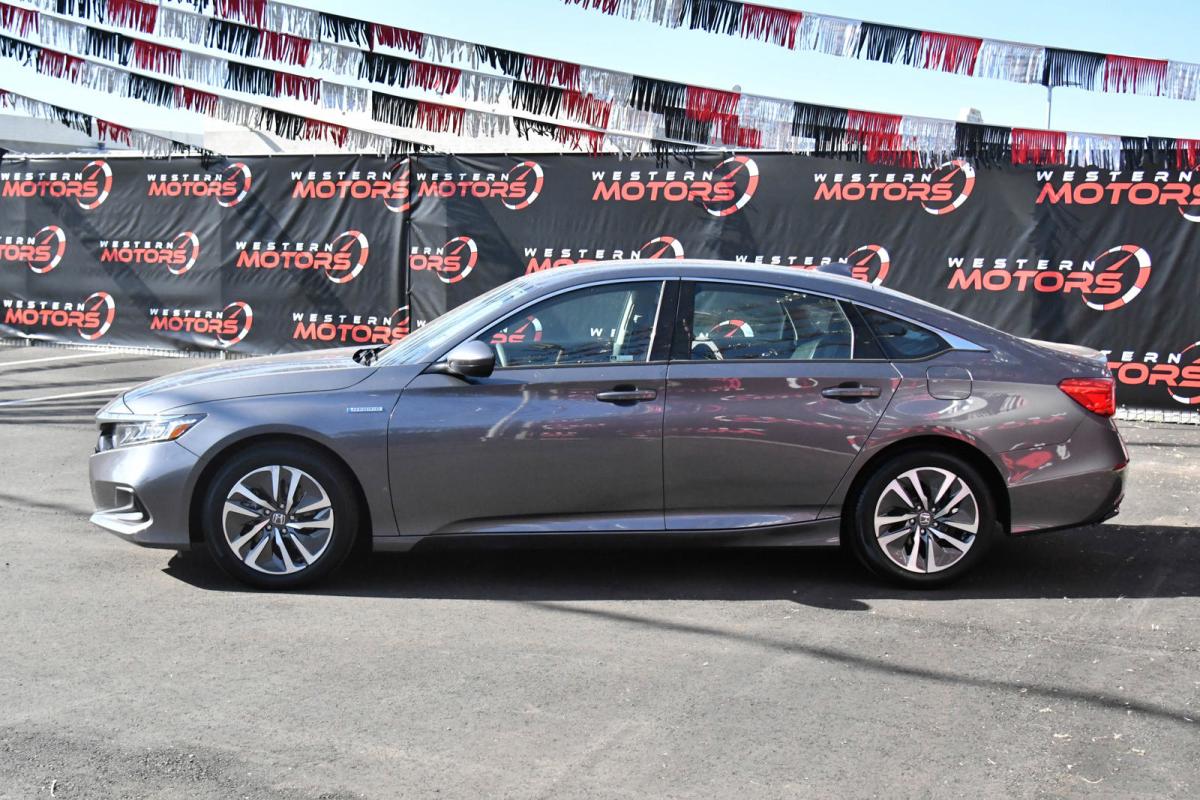 Scores 48 Highway MPG and 48 City MPG! This Honda Accord Hybrid delivers a Gas/Electric I-4 2.0 L/122 engine powering this Variable transmission. Wheels: 17 Machine-Finished Alloy, Vehicle Stability Assist (VSA) Electronic Stability Control (ESC), Valet Function.*This Honda Accord Hybrid Comes Equipped with These Options *Trunk Rear Cargo Access, Trip Computer, Transmission: Electronic Continuously Variable -inc: 3-mode drive system (ECON/sport/EV), Shift-By-Wire (SBW) and deceleration paddle selector indicator, Tires: 225/50R17 94V AS, Tire mobility kit, Systems Monitor, Strut Front Suspension w/Coil Springs, Speed Sensitive Variable Intermittent Wipers, Single Stainless Steel Exhaust, Side Impact Beams.