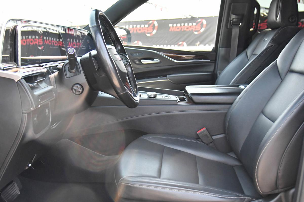 ALG Residual Value. Delivers 20 Highway MPG and 15 City MPG! This Cadillac Escalade delivers a Gas V8 6.2L/376 engine powering this Automatic transmission. WHEELS, 22 (55.9 CM) 14-SPOKE ALLOY WITH BRIGHT SILVER FINISH (STD), TRANSMISSION, 10-SPEED AUTOMATIC electronically controlled with overdrive, tow/haul mode and tap up/tap down shifting (Most vehicles built on or after 6-7-2021 with a V8 engine will have (NSS) Not Equipped with Automatic Stop/Start, which removes Automatic Stop/Start, Engine control stop/start disable button and its content.) (STD), SHADOW METALLIC.*This Cadillac Escalade Comes Equipped with These Options *SEATS, SECOND ROW 60/40 SPLIT-FOLDING BENCH, POWER RELEASE, SEATS, FRONT BUCKET (Includes 12-way driver and front passenger adjustments.) (STD), REAR AXLE, 3.23 RATIO, OLED INFOTAINMENT EXPERIENCE WITH NAVIGATION AM/FM/SiriusXM with 360L with 16.9 diagonal color information display (displays and controls navigation, music and all features and functions of the vehicle), personalized profiles for each driver's settings, Natural Voice Recognition, Phone Integration for Wireless Apple CarPlay/Wireless Android Auto capability for compatible phone, Near Field Communication (NFC) mobile device pairing, Connected Apps and Teen Driver (STD), LUXURY PREFERRED EQUIPMENT GROUP includes standard equipment, LICENSE PLATE BRACKET, FRONT, JET BLACK, LEATHERETTE SEATING SURFACES (With Linear Tiger wood trim.), GVWR, 7400 LBS. (3357 KG) (STD), ENGINE, 6.2L V8 WITH DYNAMIC FUEL MANAGEMENT Direct Injection and Variable Valve Timing, includes aluminum block construction (420 hp [313.2 kW] @ 5600 rpm, 460 lb-ft of torque [623.7 Nm] @ 4100 rpm) (STD), Wireless Phone Charging located in the console just in front of the console bin lid (The system wirelessly charges one compatible mobile device. Some phones have built-in wireless charging technology and others require a special adaptor/back cover. To check for phone or other device compatibility, see my.cadillac.com/learnAbout/wireless-charging or consult your carrier.).
