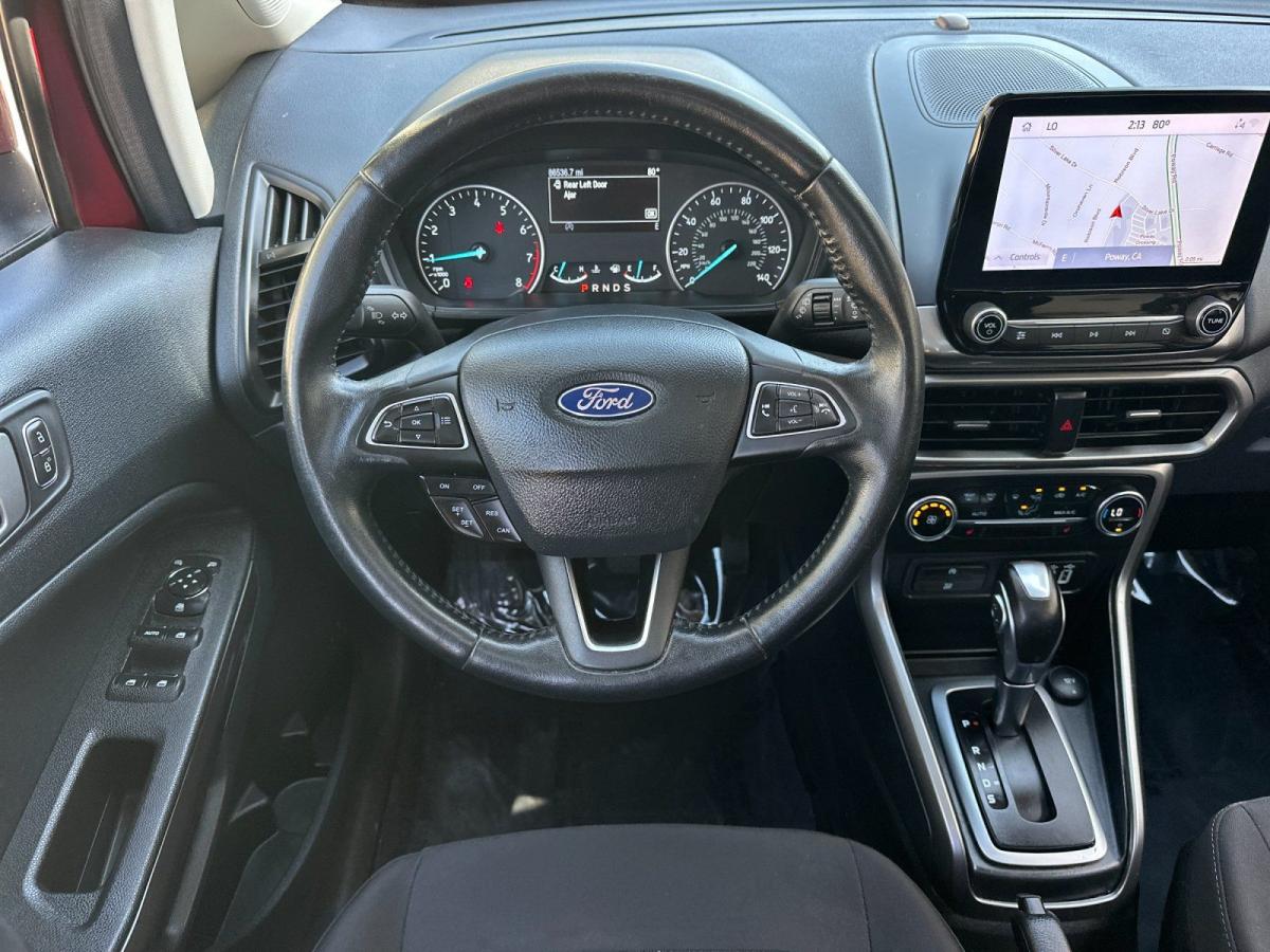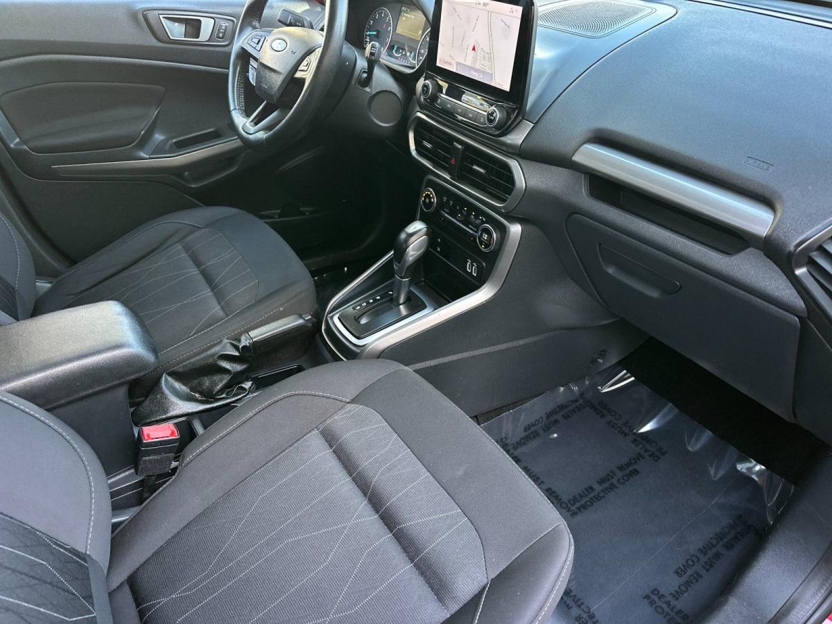 Discover the perfect blend of style, technology, and efficiency in this 2020 Ford EcoSport SE. With its sleek exterior, impressive performance, and a wealth of premium features, this versatile SUV is the ideal choice for the modern driver.Highlighted by the following standout attributes:• SE Convenience Package• Ruby Red Metallic Tinted Clearcoat Exterior• SYNC 3 Communications & Entertainment System with 8" Touchscreen• Blind Spot Information System (BLIS) with Cross-Traffic Alert• 110V/150W AC Power Outlet• 7-Speaker Premium Sound SystemPowered by the EcoBoost 1.0L I3 engine, this EcoSport delivers an exceptional driving experience with its responsive acceleration and impressive fuel efficiency, achieving an EPA-estimated 27 city/29 highway MPG. The 6-speed automatic transmission and front-wheel-drive configuration provide a smooth, confident ride, whether navigating city streets or winding country roads.Step inside and you'll be greeted by a well-appointed interior, featuring premium cloth-trimmed heated front bucket seats, a leather-wrapped steering wheel, and ambient lighting that sets the mood. The SYNC 3 infotainment system with voice-activated navigation, Apple CarPlay, and Android Auto integration keeps you connected and in control.Safety is also a top priority, with features like the Blind Spot Information System, Cross-Traffic Alert, and a suite of airbags providing added peace of mind. The rear-view camera and rear parking sensors make maneuvering in tight spaces a breeze.This one-owner 2020 Ford EcoSport SE is a true gem, with low mileage and a clean CARFAX report. It's the perfect blend of style, technology, and efficiency that you've been searching for. Experience the difference for yourself by scheduling a test drive today. We're confident you'll be impressed by all this versatile SUV has to offer.