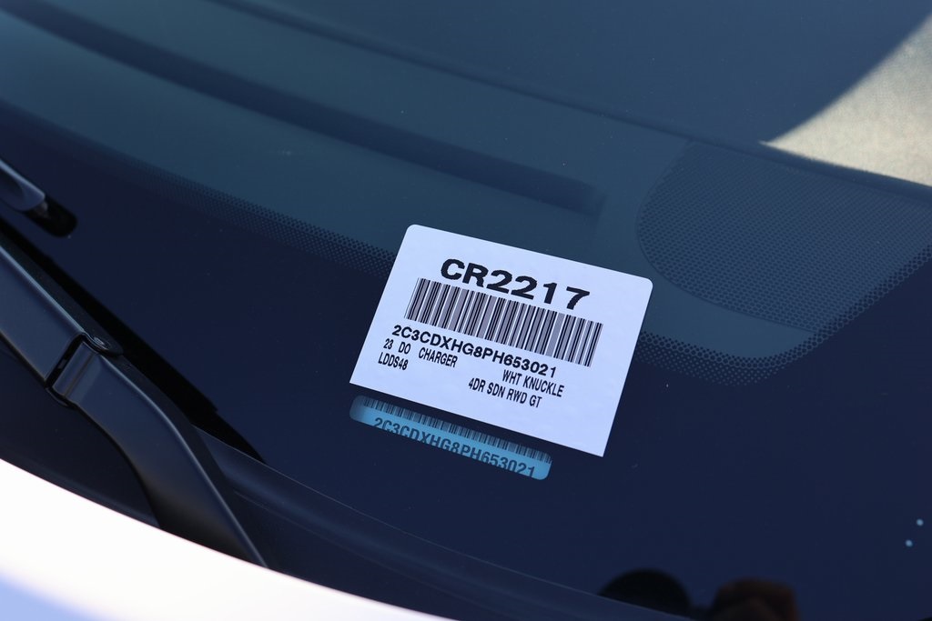White Knuckle Clearcoat 2023 Dodge Charger GT RWD 8-Speed Automatic 3.6L V6 24V VVT Black Cloth.19/30 City/Highway MPG Price includes: $3000 - 2023 DODGE California BC Bonus Cash CACPA. Exp. 06/03/2024 $3000 - 2023 DODGE National Power Dollars Retail Bonus Cash 38CP9. Exp. 06/03/2024