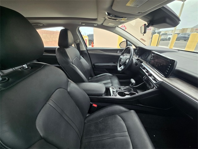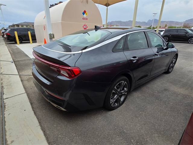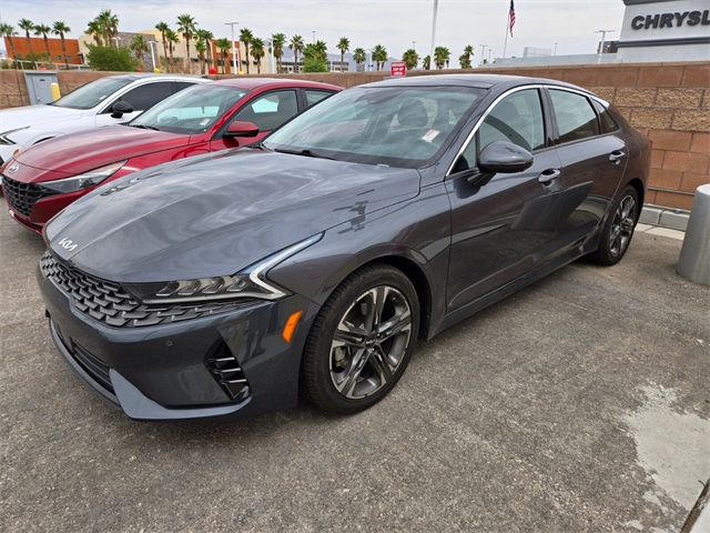 Recent Arrival!Priced below KBB Fair Purchase Price!27/37 City/Highway MPGGravity Gray 2022 Kia K5 EX FWD 8-Speed Automatic I4If you don't drive here, you can't save here!Price may not include recon fee. EX Premium Package (10-Way Power Passenger Seat, Active Sound Design, Auto Up/Down Rear Windows, Bose Premium Audio, Forward Collision Avoidance-Assist - Cyclist, Forward Collision Avoidance-Assist - Junction Turn, Heated Steering Wheel, LED Rear Combi Lamps, Memory Driver's Seat & Outside Mirrors, Navigation-Based Smart Cruise Control - Curve, Outside Mirrors w/LED Turn Signals, Parking Collision Avoidance-Assist - Reverse, Parking Distance Warning - Forward, Power Child Lock, Power Folding Outside Mirrors, Safe Exit Assist w/Lock, Smart Cruise Control w/Stop & Go, and Surround View Monitor), 4-Wheel Disc Brakes, 6 Speakers, ABS brakes, Air Conditioning, Alloy wheels, AM/FM radio: SiriusXM, Apple CarPlay & Android Auto, Auto High-beam Headlights, Automatic temperature control, Brake assist, Bumpers: body-color, Carpeted Floor Mats, Delay-off headlights, Driver door bin, Driver vanity mirror, Dual front impact airbags, Dual front side impact airbags, Electronic Stability Control, Emergency communication system, Four wheel independent suspension, Front anti-roll bar, Front Bucket Seats, Front Center Armrest, Front dual zone A/C, Front reading lights, Fully automatic headlights, Heated & Ventilated Front Bucket Seats, Heated door mirrors, Heated front seats, Illuminated entry, Knee airbag, Leatherette Seat Trim, Low tire pressure warning, Navigation System, Occupant sensing airbag, Outside temperature display, Overhead airbag, Overhead console, Panic alarm, Passenger door bin, Passenger vanity mirror, Power door mirrors, Power driver seat, Power moonroof, Power steering, Power windows, Radio data system, Radio: AM/FM/MP3 Audio System, Rear anti-roll bar, Rear Bumper Applique, Rear reading lights, Rear seat center armrest, Rear side impact airbag, Rear window defroster, Remote keyless entry, Security system, Smart Key w/ Push Button and Remote Start, Speed control, Speed-sensing steering, Split folding rear seat, Steering wheel mounted audio controls, Tachometer, Telescoping steering wheel, Tilt steering wheel, Traction control, Trip computer, Variably intermittent wipers, Ventilated front seats, and Wheels: 7.5J x 18" Gray Machined Finish Alloy.