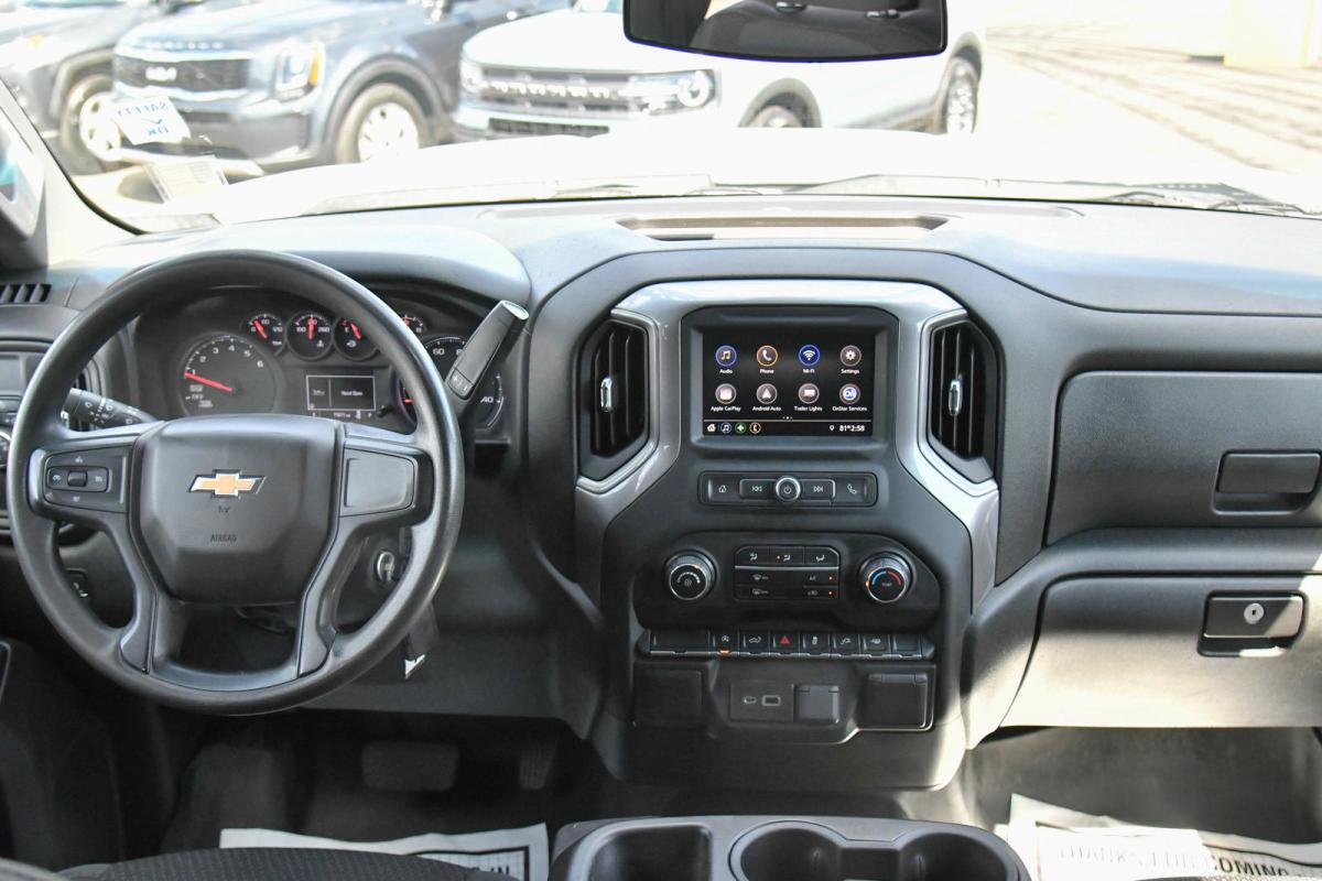 This Chevrolet Silverado 1500 has a strong Turbocharged Gas I4 2.7L/166 engine powering this Automatic transmission. WHEELS, 20 X 9 (50.8 CM X 22.9 CM) BRIGHT SILVER PAINTED ALUMINUM (STD), TRANSMISSION, 8-SPEED AUTOMATIC, ELECTRONICALLY CONTROLLED with overdrive and tow/haul mode. Includes Cruise Grade Braking and Powertrain Grade Braking (STD), TIRES, 275/60R20SL ALL-TERRAIN, BLACKWALL.*This Chevrolet Silverado 1500 Comes Equipped with These Options *SUMMIT WHITE, SEATS, FRONT 40/20/40 SPLIT-BENCH with covered armrest storage (STD), REAR AXLE, 3.42 RATIO, POWER OUTLET, INSTRUMENT PANEL, 120-VOLT (400 watts shared with (KC9) bed mounted power outlet), POWER OUTLET, BED MOUNTED, 120-VOLT (400 watts shared with (KI4) instrument panel mounted power outlet), LICENSE PLATE KIT, FRONT, JET BLACK, CLOTH SEAT TRIM, ENGINE, 2.7L TURBO (310 hp [231 kW] @ 5600 rpm, 348 lb-ft of torque [471 Nm] @ 1500 rpm) Includes (MQE) 8-speed automatic transmission and (KW5) 220-amp alternator.) (STD), CUSTOM PREFERRED EQUIPMENT GROUP includes standard equipment, AUDIO SYSTEM, CHEVROLET INFOTAINMENT 3 SYSTEM 7 diagonal color touchscreen, AM/FM stereo. Additional features for compatible phones include: Bluetooth audio streaming for 2 active devices, voice command pass-through to phone, wired Apple CarPlay and Android Auto capable. (STD).